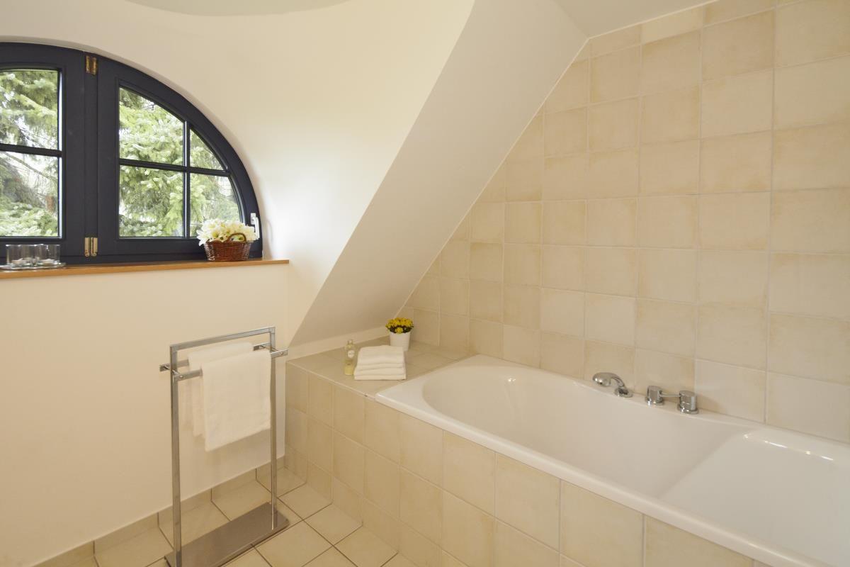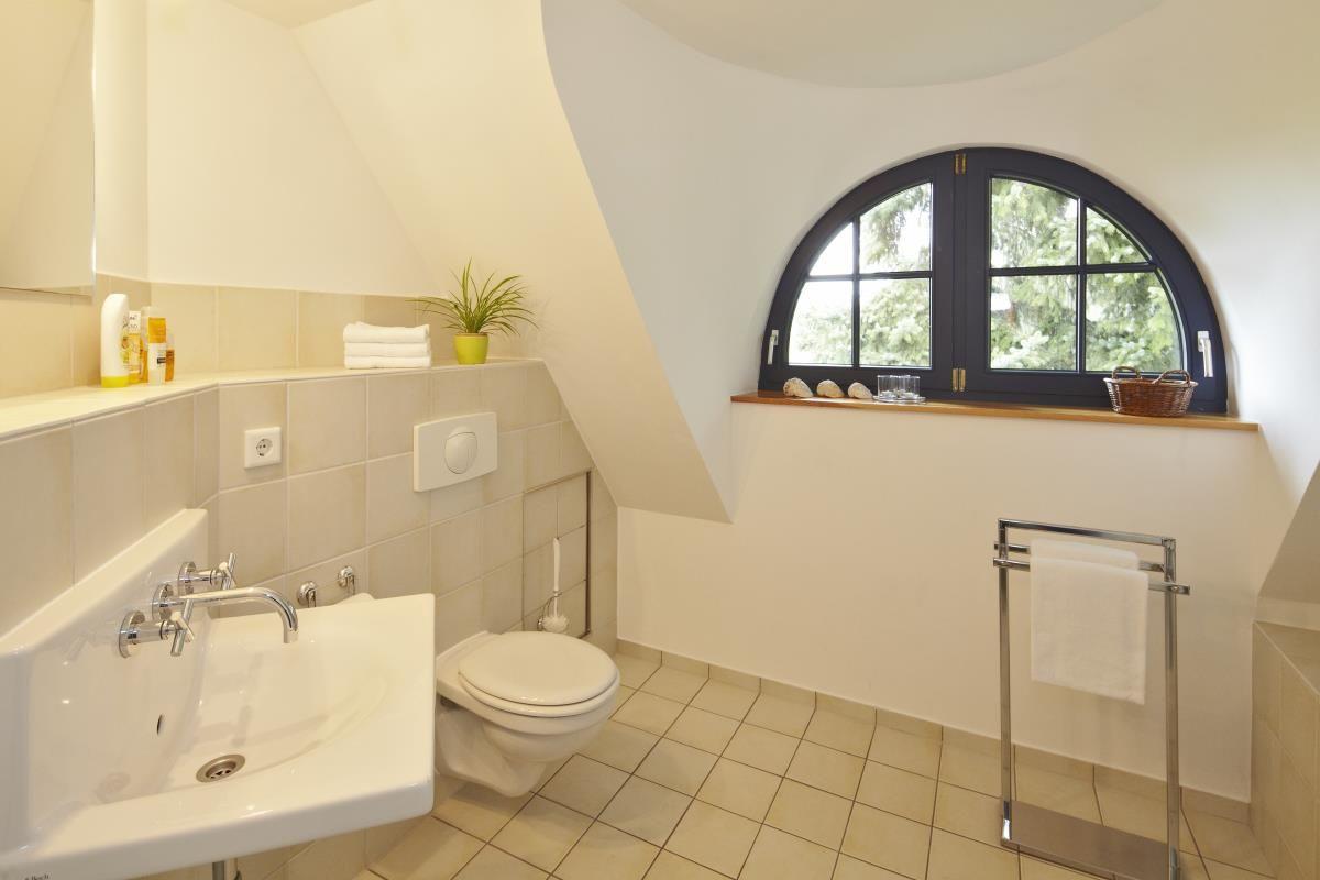 Im Erdgeschoss des Hauses gibt es ein Badezimmer mit Dusche und WC, im ersten Obergeschoss ein Bad mit Wanne und WC. Beide Bäder verfügen jeweils auch über ein Außenfenster.
