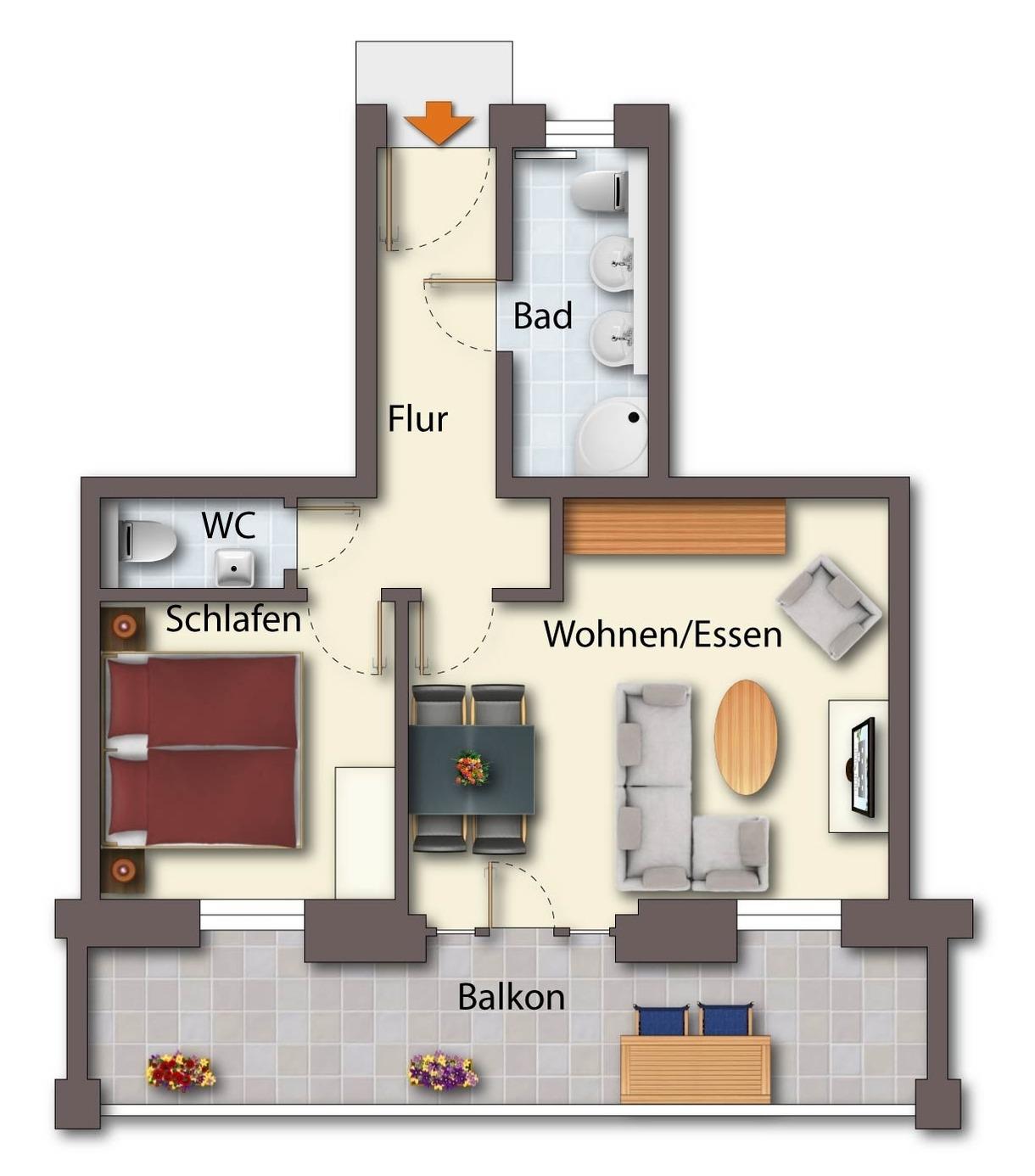 Wohnfläche 53 m²