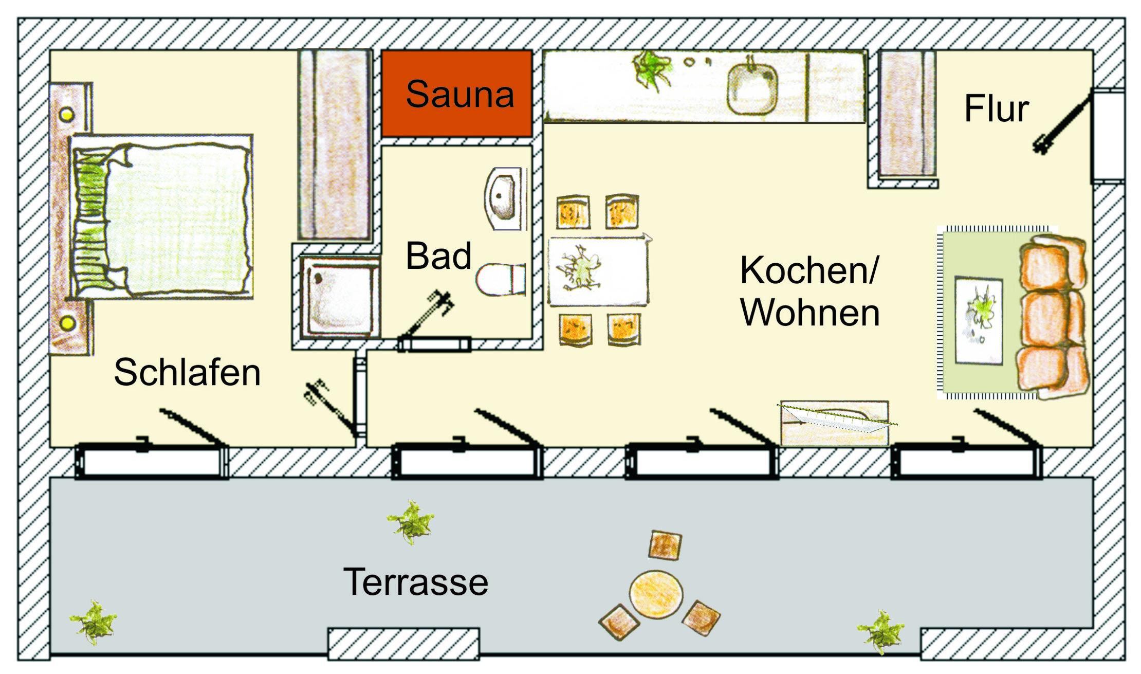 - Wohn-/Schlafzimmer, 2 Personen