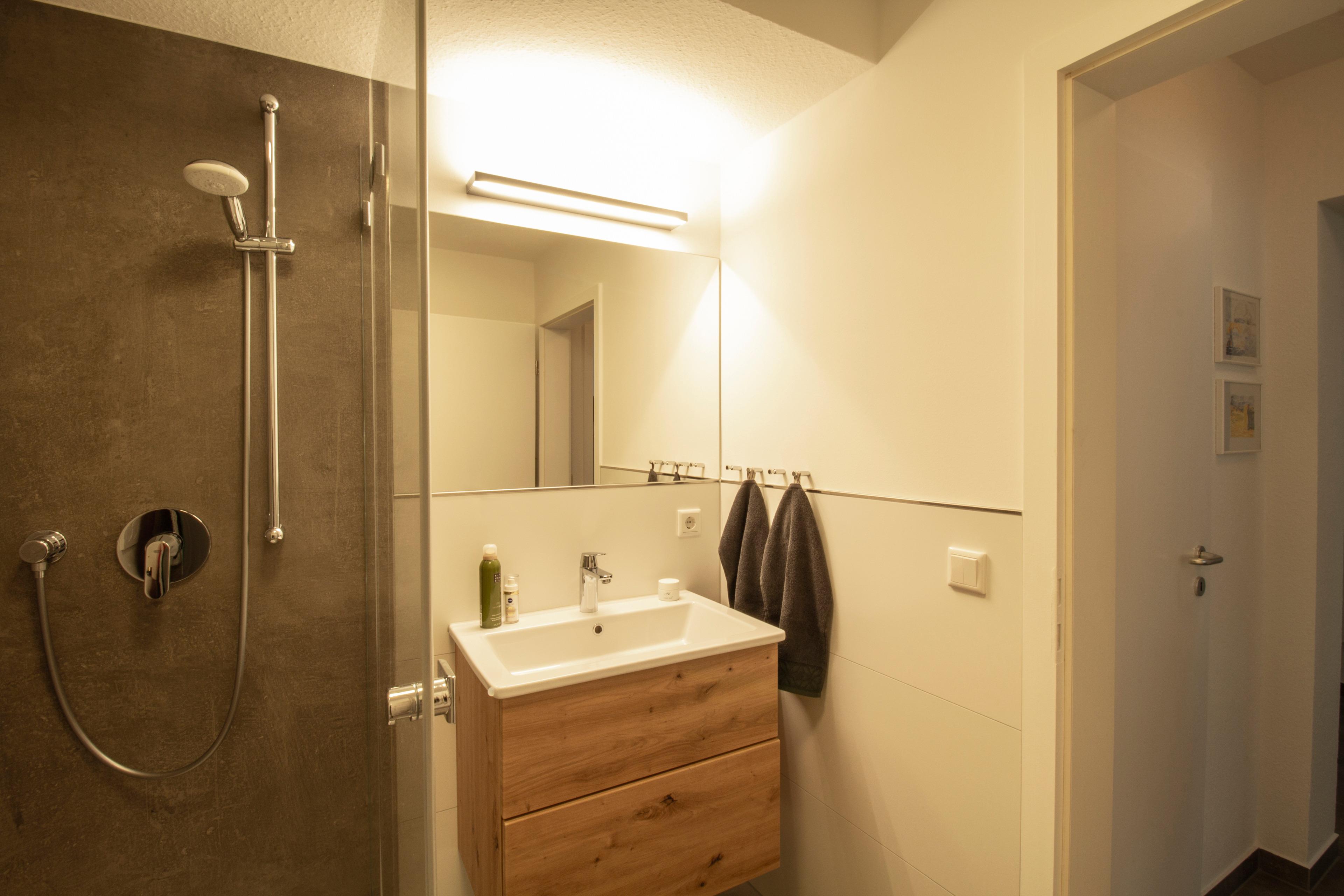 Der großzügige Wohnraum mit breiter Fensterfront ist mit einer gemütlichen Couchecke, Flat-TV und Radio ausgestattet. Die Vollküche mit Geschirrspüler, Kochfeld, Backofen ist offen im Wohnraum integriert, ein separater Essplatz bietet 4 Personen Platz für gemeinsame Mahlzeiten. Der geräumige helle Schlafraum ist mit einem Doppelbett, mit getrennten Matratzen (0,90 x 2,00 m) und genügend Schrankraum ausgestattet. Die Schlafcouch (Liegefläche 1,40 x 2,00 m) im Wohnzimmer stellt die Schlafmöglichkeit für weitere 1-2 Personen. Das Bad ist mit Dusche, Waschbecken und WC ausgestattet. Im Keller finden Sie einen Fahrradraum, Waschmaschine und Trockner. Der Pkw-Stellplatz befindet sich auf dem Grundstück und ist der Wohnung zugeordnet.