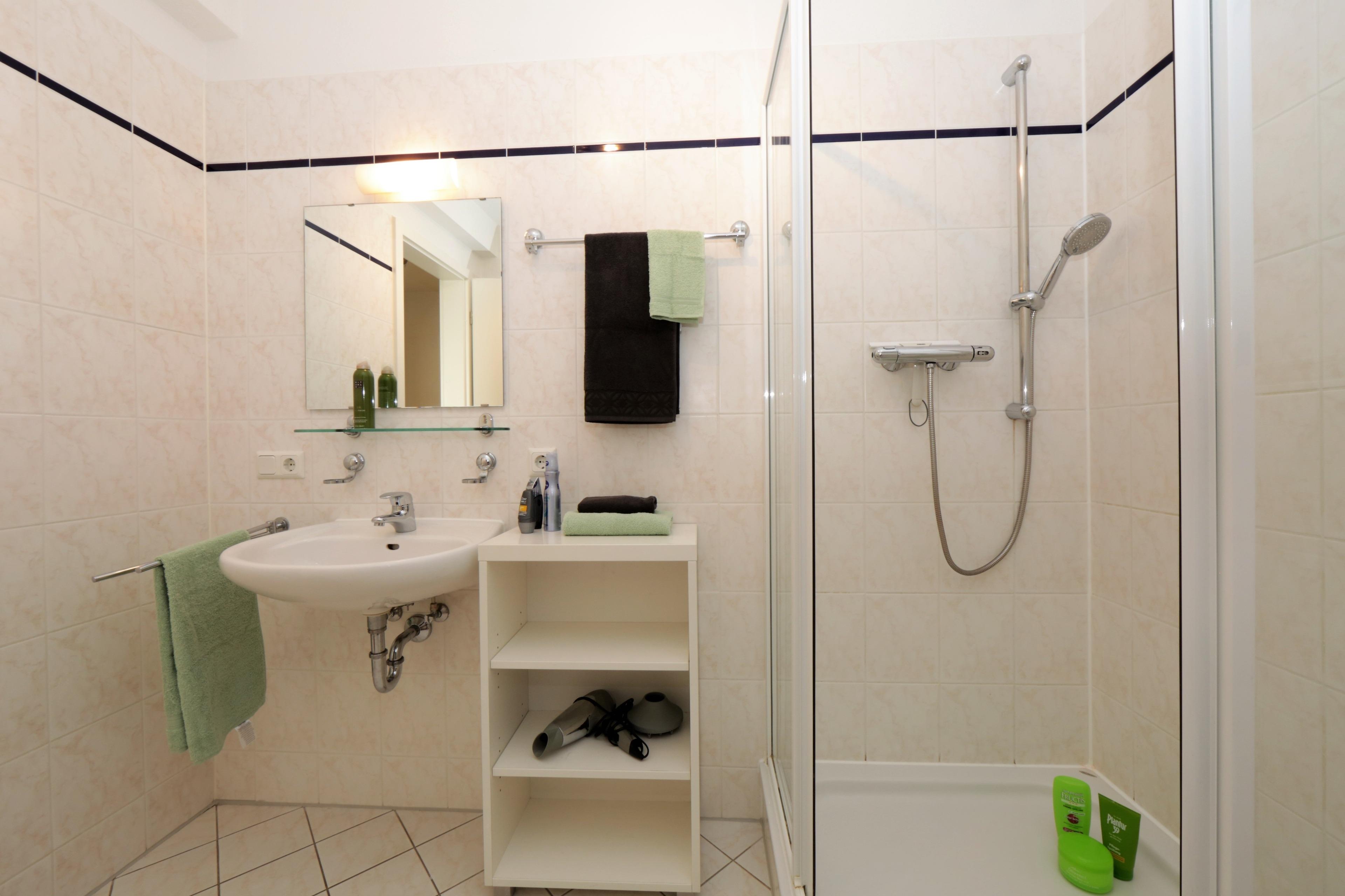 Dieses 54 qm große gemütliche 3-Zimmer-Appartement liegt im Erdgeschoss und verfügt über einen Balkon in nordöstlicher Ausrichtung. Der helle Wohnraum ist mit einem gemütlichen Sofa und Sessel und einem separaten Essplatz für 4 Personen eingerichtet. Ein Flat TV ist selbstverständlich. Die Küchenzeile inkl. Kühlschrank, Geschirrspüler, Cerankochfeld und Mikrowelle ist offen im hinteren Wohnbereich integriert. Das größere Schlafzimmer ist mit einem Doppelbett mit getrennten Matratzen (90 x 200) Kleiderschrank und Kommode eingerichtet, das kleinere mit zwei Einzelbetten (90 x 180) und kleinerem Schrankraum. Der möblierte Balkon liegt zur Hofseite und lädt besonders vormittags zum Verweilen ein. Im Bad steht den Gästen Dusche und Waschbecken/WC zur Verfügung. Ein Pkw- Stellplatz befindet sich auf dem Hof und ist der Wohnung zugeordnet. Den Fahrradabstellraum mit komfortablem Austritt finden Sie im Keller.