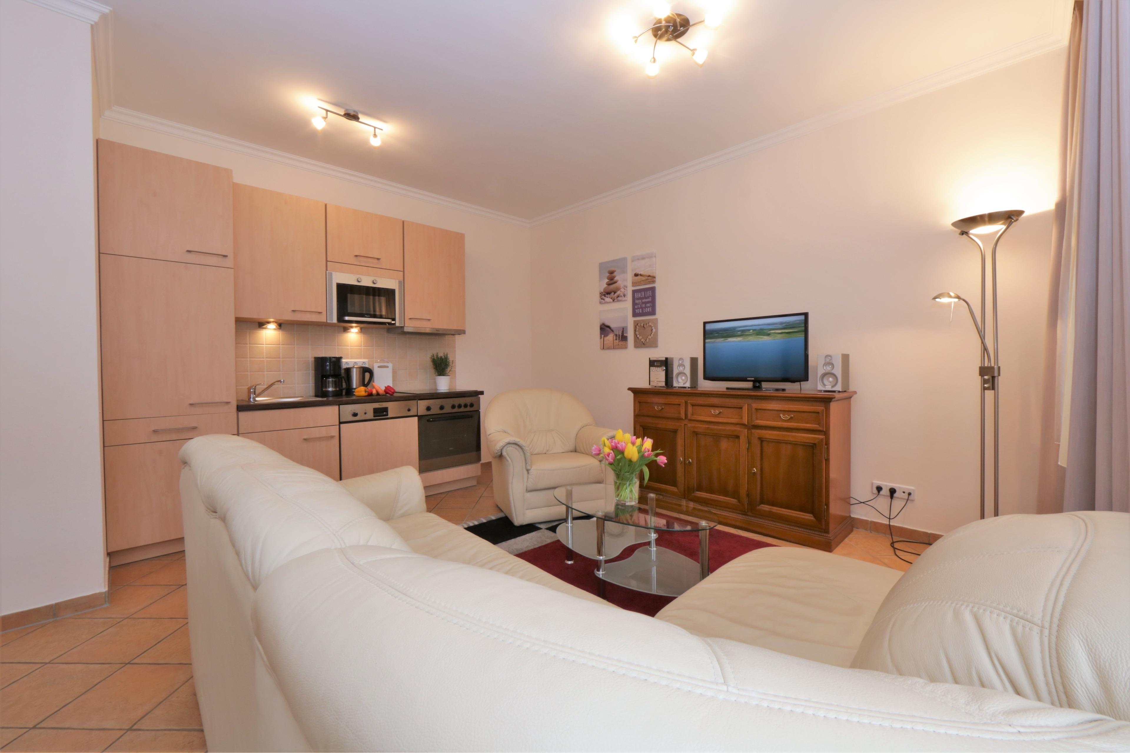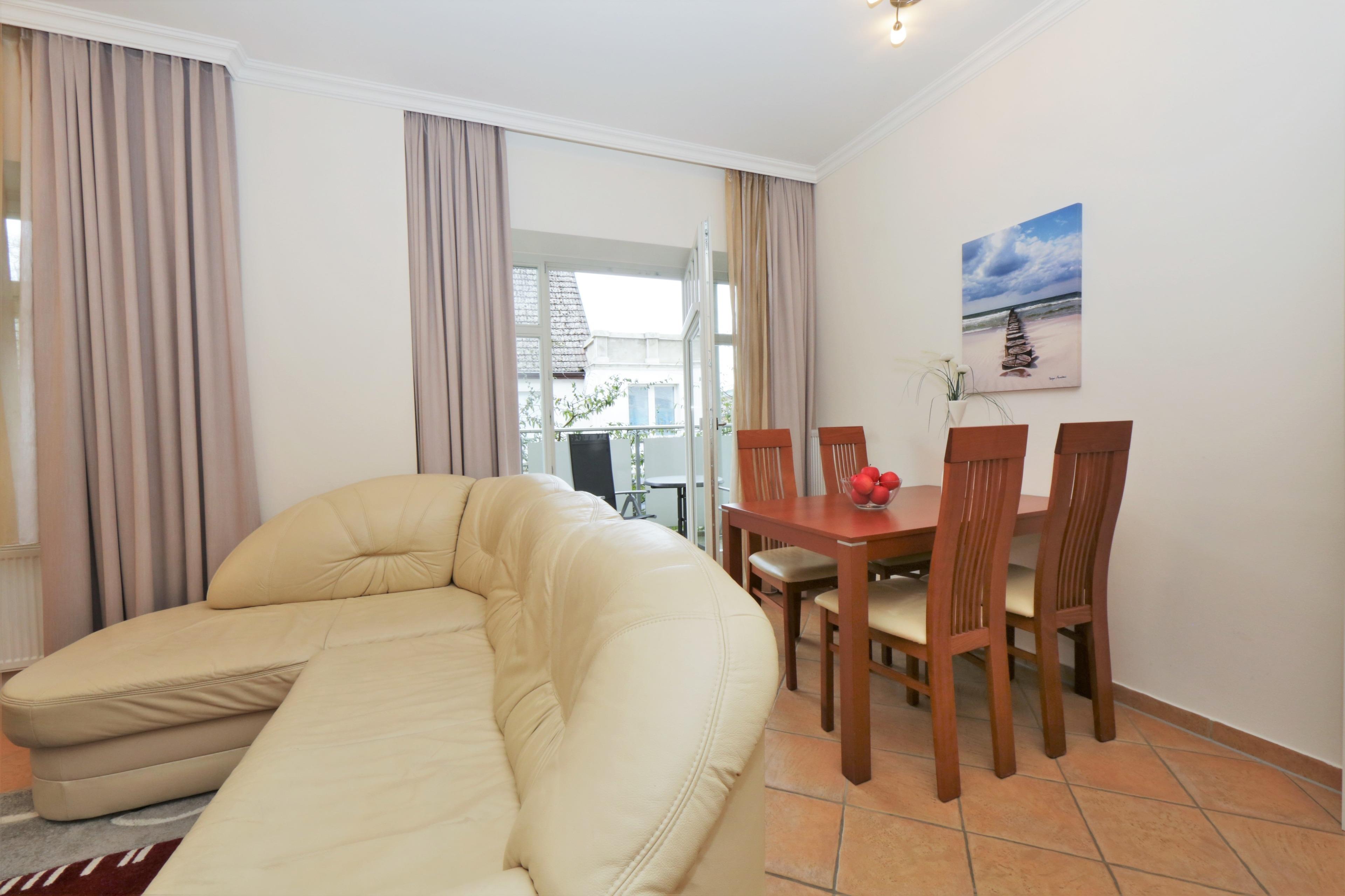 Komfortable 2-Zimmer-Ferienwohnung mit Balkon und teilweisem Meerblick in Seebad Heringsdorf, nur 100m vom feinsandigen Strand entfernt.