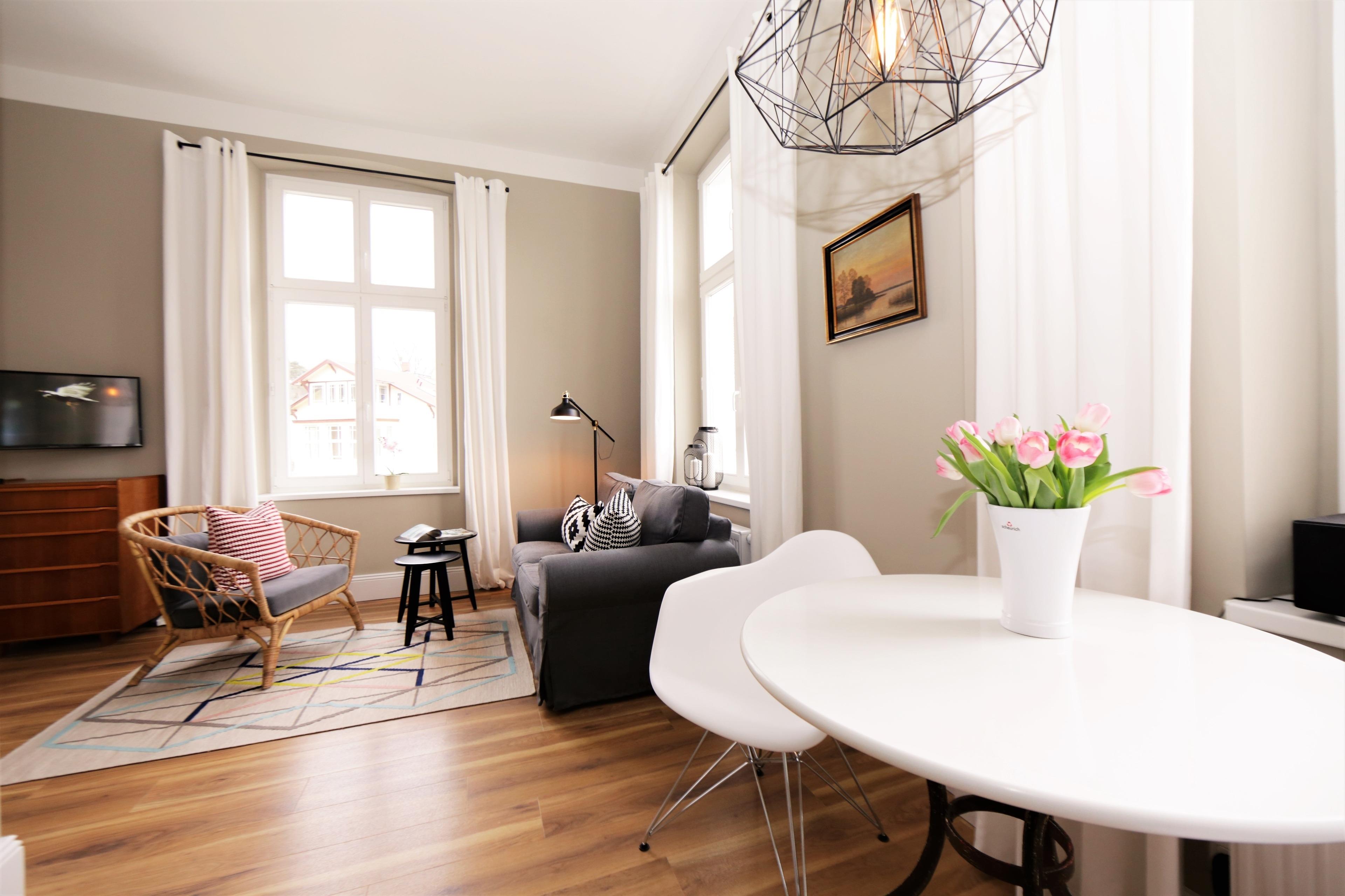 Stilvolle Ferienwohnung in Heringsdorf, nur 300 m vom Strand entfernt, mit moderner Ausstattung und PKW-Stellplatz.