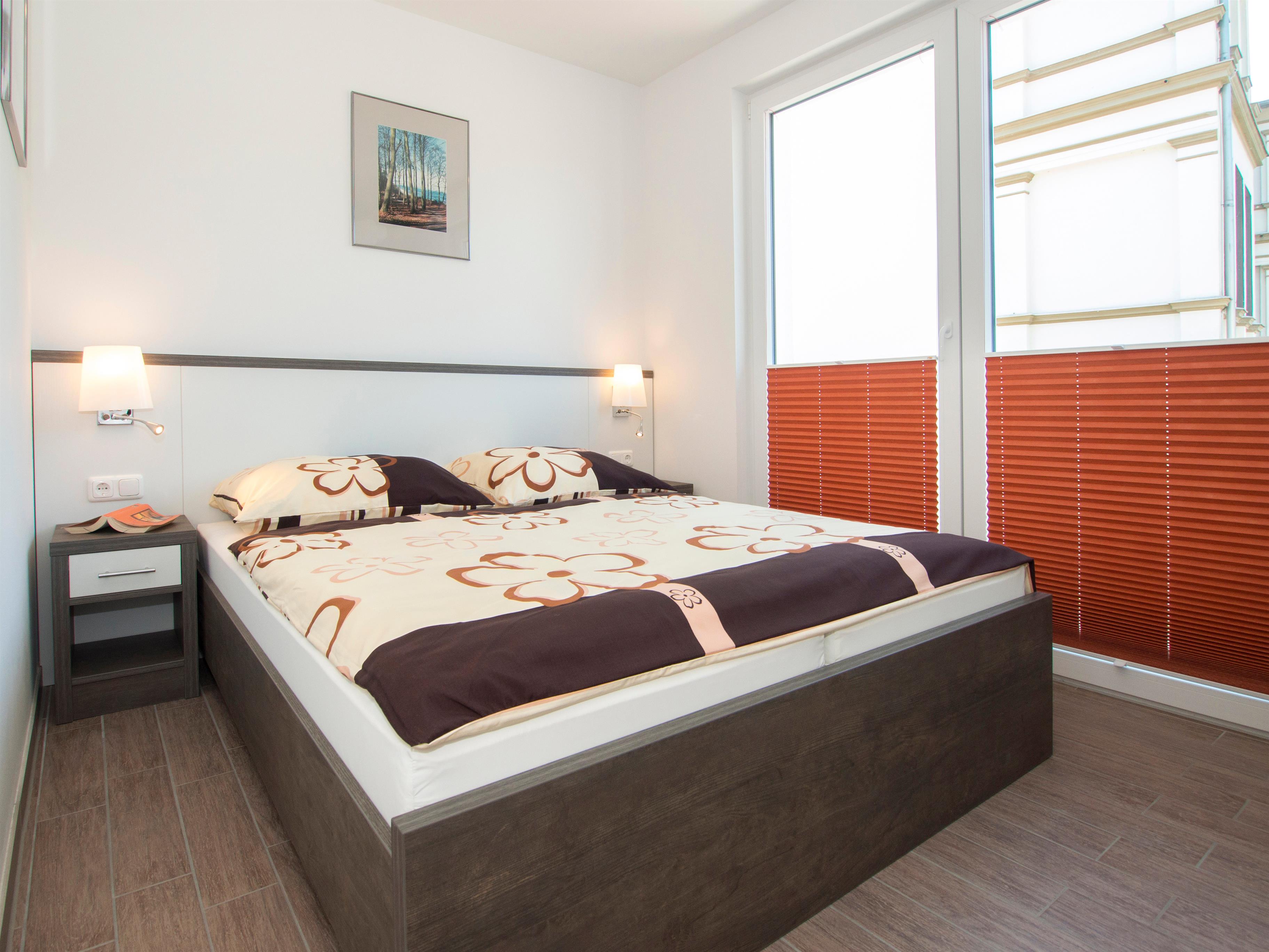 Dieses modern und hochwertig eingerichtete 45 qm große 2-Zimmer-Appartement liegt im 1. Obergeschoss und eignet sich für 2 bis 4 Personen. Der Wohnraum ist mit einer gemütlichen Sitzecke (mit Schlaffunktion 1,25 x 1,80m) sowie einem Essbereich ausgestattet. Die offen im Wohnbereich integrierte Küchenzeile ist mit Geschirrspüler, Cerankochfeld, Backofen p.p. ausgestattet. Der vom Wohnraum begehbare Balkon mit Südwestausrichtung verspricht viel Sonne. Das helle Schlafzimmer verfügt über ein Doppelbett mit getrennten Matratzen (80 x 200) und genügend Schrankraum. Im Bad mit kleinem Fenster finden Sie eine ebenerdige Dusche sowie Waschtisch und WC. Ein separater abschließbarer Fahrradraum mit Stromanschluss (für Elektrofahrräder geeignet) befindet sich im Gebäude, ein Pkw- Stellplatz auf dem Grundstück ist dem Appartement zugeordnet.