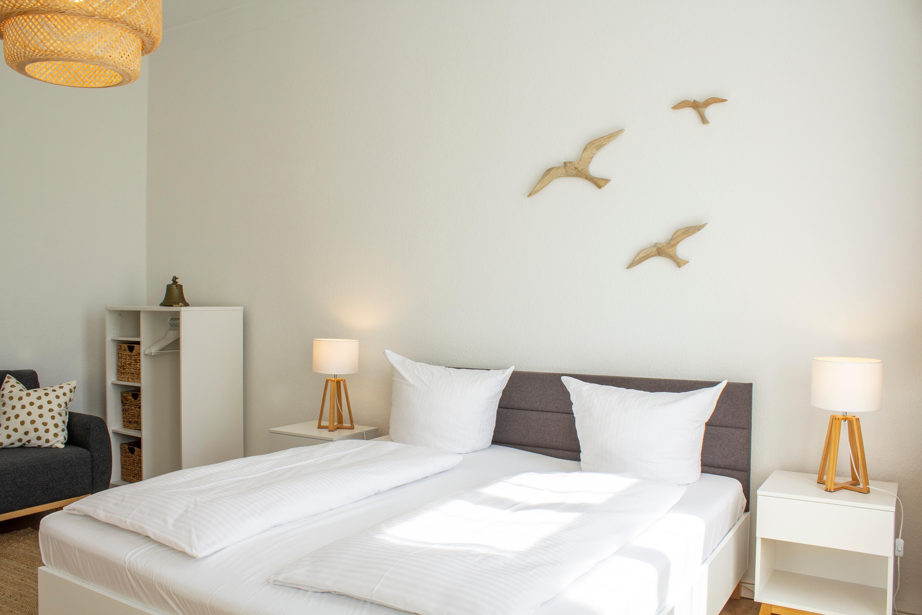 Diese modern und gemütlich eingerichtete 3-Zimmer Wohnung ist 94 qm groß und liegt im Erdgeschoss der im Jahr 1895 als Sommerresidenz erbauten Villa Kramme. Sie bietet 4 - 6 Personen viel Platz für einen erholsamen Ostseeaufenthalt. Der helle Wohnraum verfügt über eine Eckcouch und Hocker sowie einen großen Flat TV. Offen im Wohnraum integriert wurde die Vollküche incl. Geschirrspüler, Ceranfeld, Backofen, Mikrowelle, Kühlschrank etc. Der Essplatz in der lichtdurchfluteten Loggia mit Kronleuchter lädt zu gemeinsamen Mahlzeiten ein. Von hier können Sie das Treiben auf der Heringsdorfer Kulmstraße bestens beobachten. Ein großzügiges und modern eingerichtetes Schlafzimmer befindet sich auf der Rückseite des Hauses und ist mit einem komfortablen Doppelbett mit getrennten Matratzen (90 x 200), ausreichend Schrankraum und einer zusätzlichen Schlafcouch (1,40x2,00) ausgestattet. Das 2. Schlafzimmer bietet den Gästen ein Boxspringbett (getrennte Matratzen 0,90x2,00 durchgehender Topper), eine Sitzgelegenheit sowie genügend Platz für Ihre Kleidung. Das Tageslichtbad ist mit Dusche und Waschtisch/WC ausgestattet. Zusätzlich verfügt die Ferienwohnung über ein Gäste-WC.