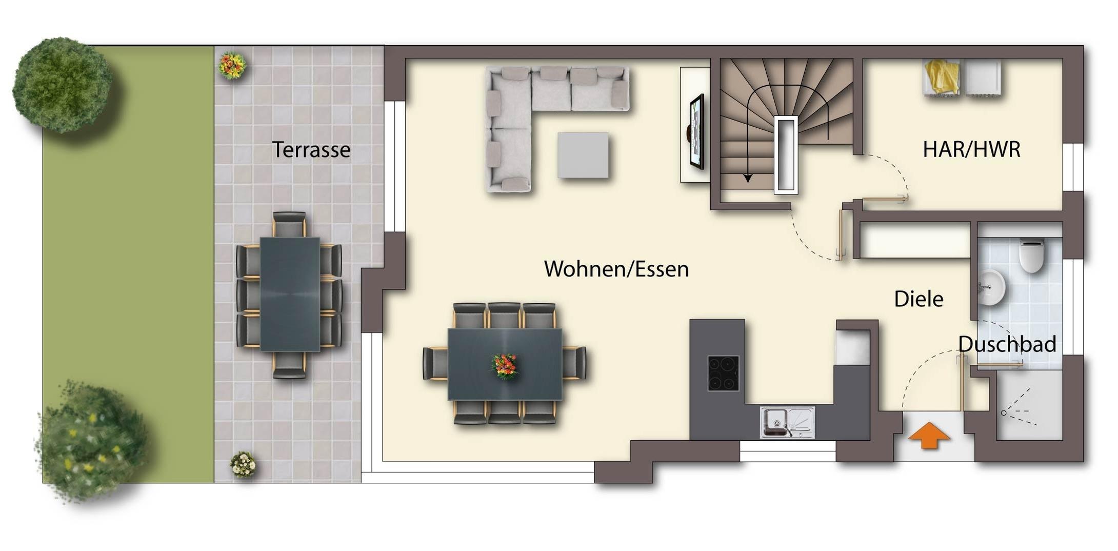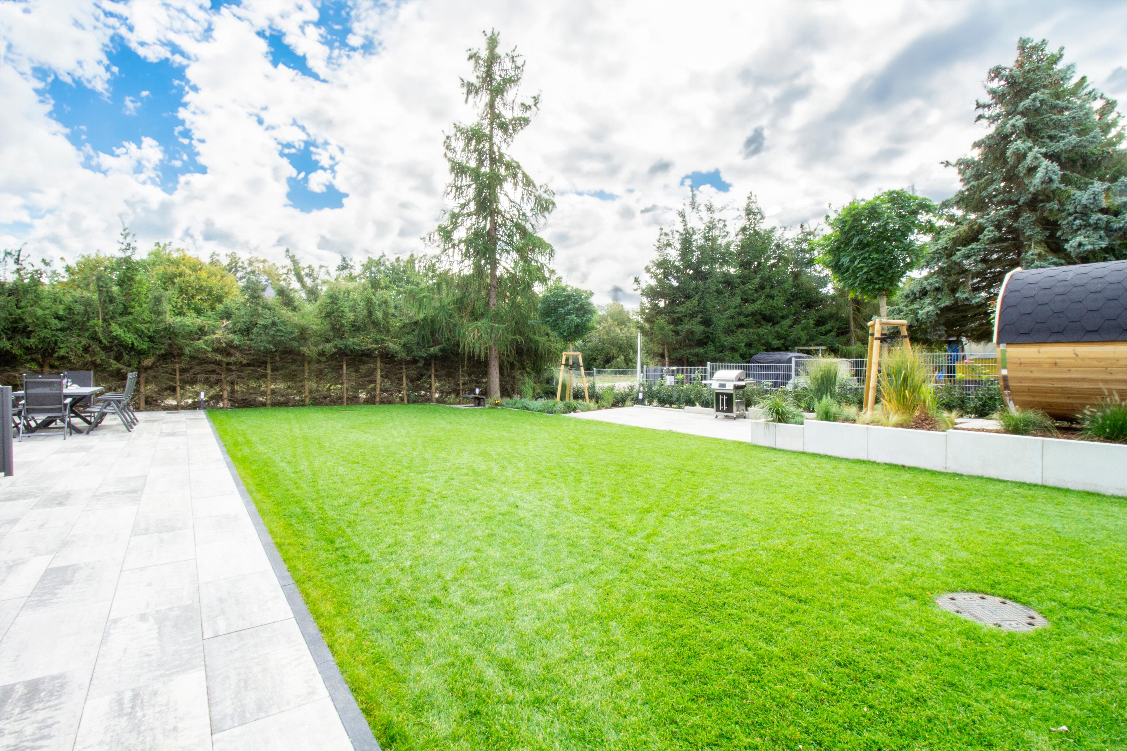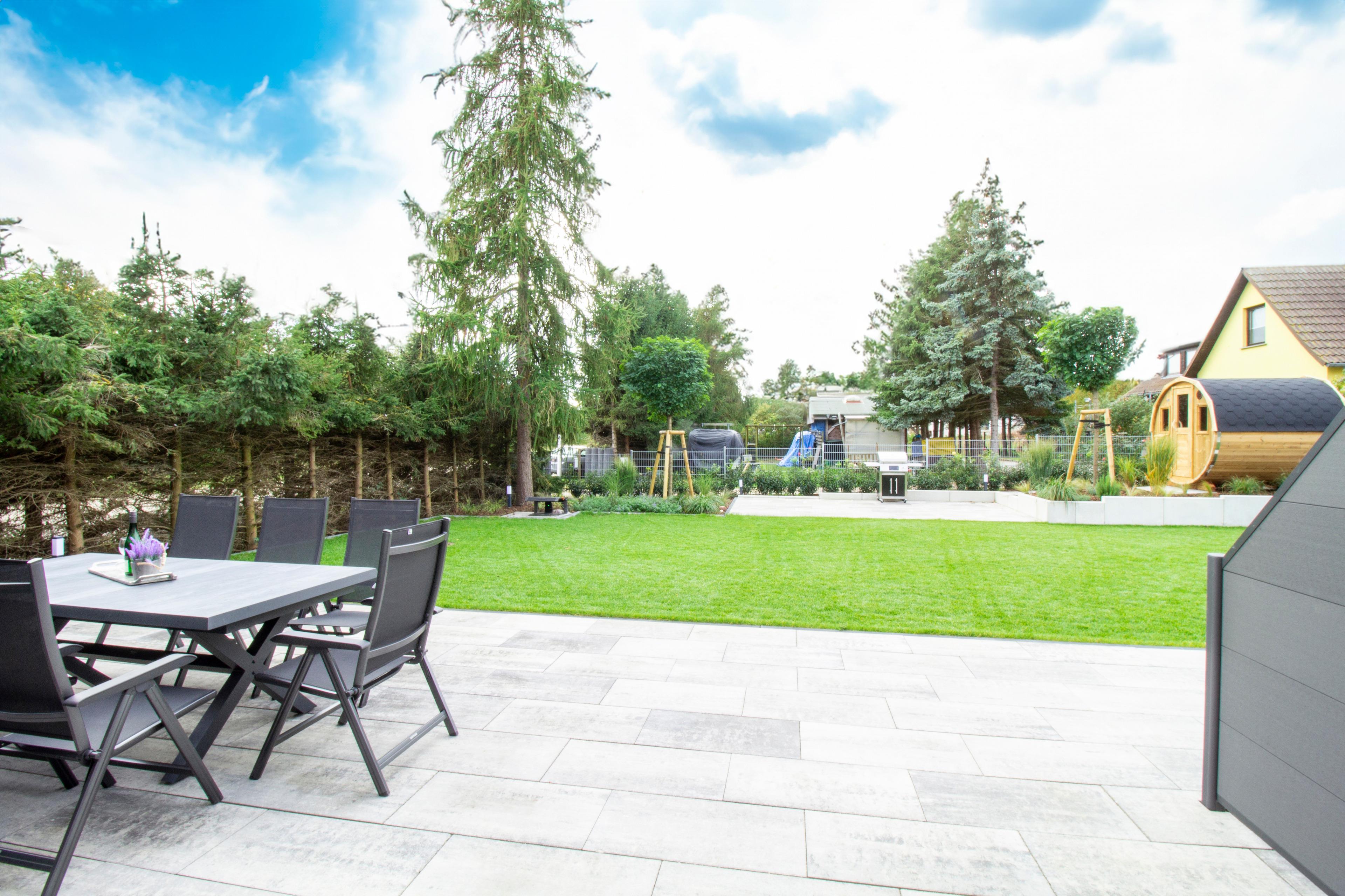 Die großzügige Terrasse mit angrenzendem Rasen lädt dazu ein, entspannte Stunden im Freien zu verbringen. Und für das absolute Wohlfühlerlebnis haben wir eine Fasssauna für Sie bereitgestellt. Genießen Sie nach einem aktiven Tag an der Ostsee die wohlige Wärme und lassen Sie die Seele baumeln.