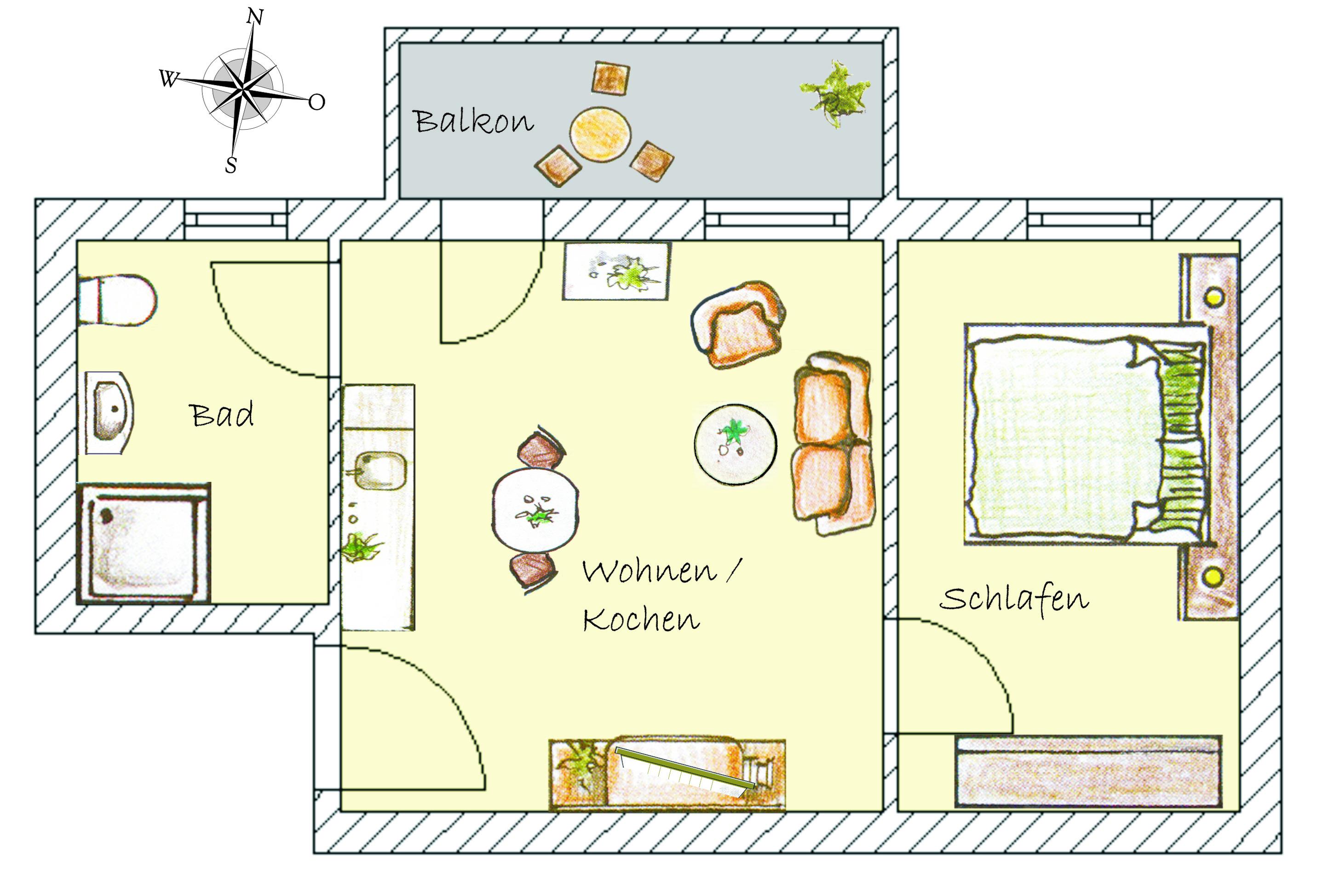 Diese 2-Zimmer-Wohnung lässt mit bestem Einrichtungskomfort und guten Geschmack auf circa 39m² kaum Wünsche offen. Eine im Wohnraum integrierte Pantryküche mit kompletter Ausstattung inklusive Geschirrspüler und Cerankochfeld steht bereit. Das Bad ist mit einer Dusche, Waschtisch und WC ausgestattet. Im Schlafraum erwartet Sie ein festes Doppelbett für angenehme Nächte. Das Wohnzimmer ist mit einer Sitzgarnitur eingerichtet, wobei Radio und TV selbstverständlich mit zur Einrichtung gehören. Ein großzügiger Balkon rundet dieses Appartement ab.