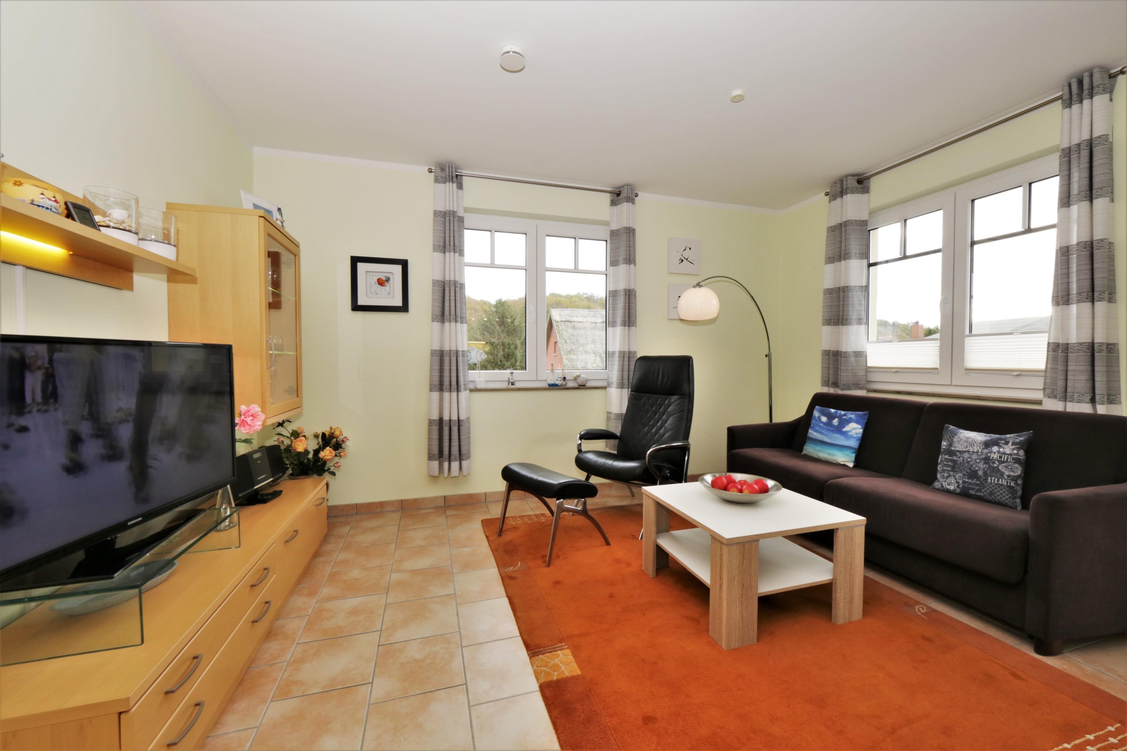 Dieses modern eingerichtete 2-Zimmer-Appartement bietet Ihnen einen angenehm hellen Wohnraum mit einer gemütlichen Sitzecke (Schlafcouch-Funktion mit den Maßen 1,60m x 2,00m). Der Bereich ist mit hübschen Details und kleinen Leinwänden dekoriert. Nahtlos geht das Wohnzimmer in die integrierte Vollküche über. Hier haben Sie einen großen Esstisch und direkten Zugang zum Balkon, welcher südwestlich ausgerichtet ist. Ihr Schlafzimmer ist mit einem Doppelbett und einem großen Schrank ausgestattet, der Ihnen viel Stauraum bietet. Abgerundet wird die Wohnung durch ein ebenfalls modernes, helles Badezimmer mit Waschmaschine und genügend Ablagemöglichkeiten für den persönlichen Bedarf. Ein PKW-Stellplatz befindet sich auf dem Grundstück und ist mit der Nummer 4 gekennzeichnet.