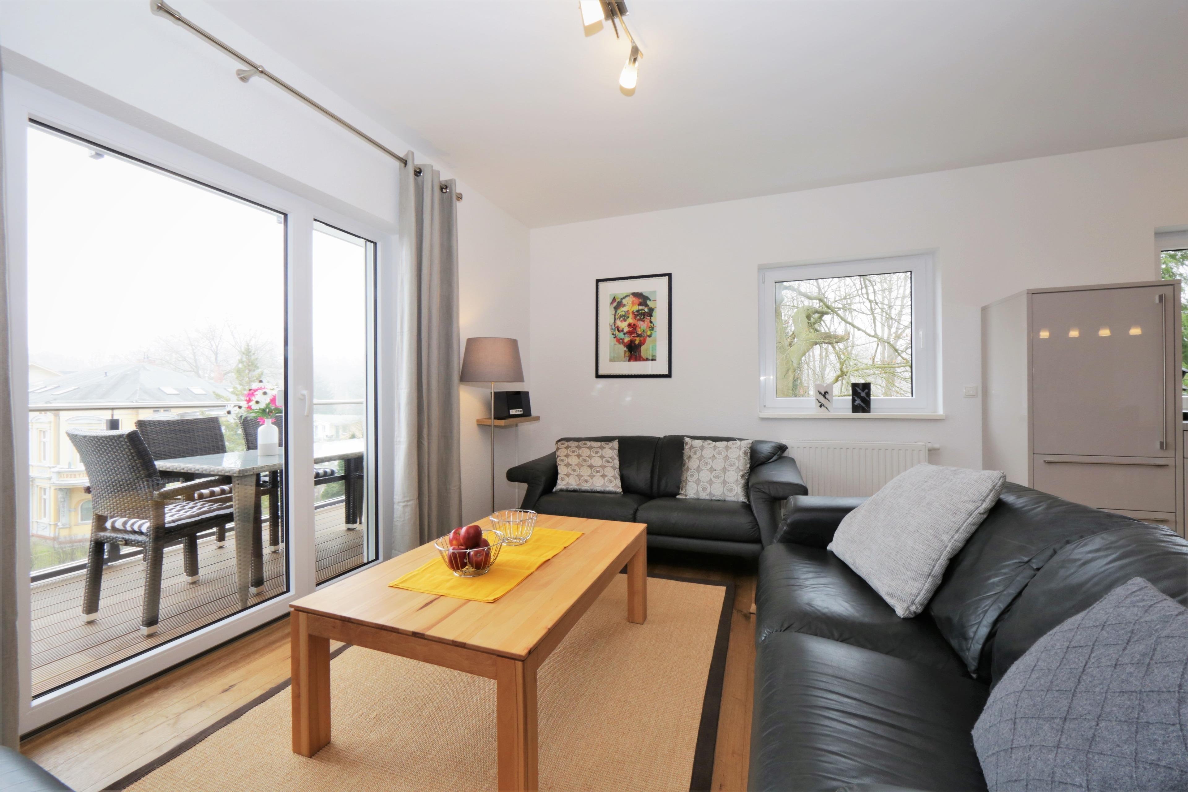 Moderne Ferienwohnung mit Balkon nahe Ostseestrand und Seebrücke in Heringsdorf.