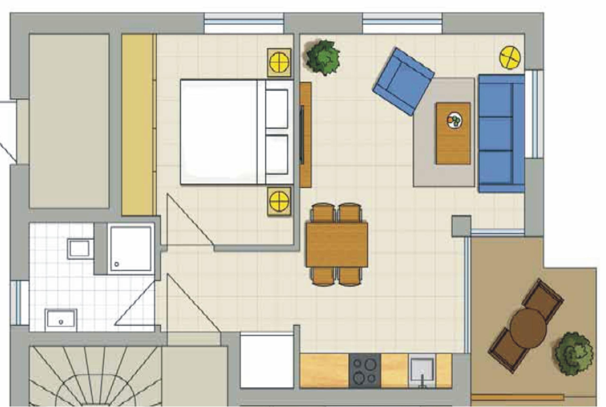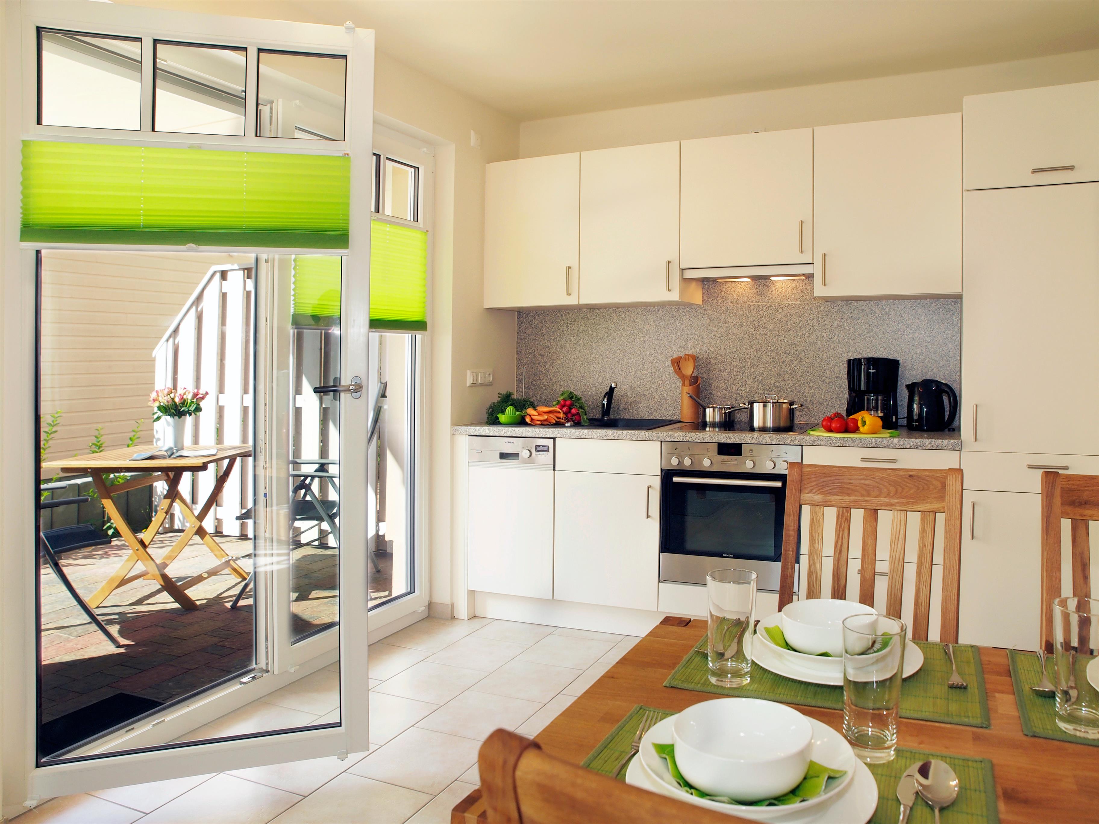 Dieses gemütliche Zwei-Zimmer-Appartement bietet Ihnen einen sonnigen Wohnraum mit Sitzecke und Esstisch. Die im Wohnraum integrierte Küche verfügt über einen Geschirrspüler, ein 4-Platten-Cerankochfeld, einen Backofen und vieles mehr. Das Schlafzimmer ist mit einem Doppelbett und ausreichend Schrankraum ausgestattet. Komplettiert wird diese Ferienwohnung - durch teilweise elektrische - Außenjalousien an allen Fenstern sowie Insektenschutz in allen Räumen. Eine Terrasse in süd/westlicher Ausrichtung ist der ideale Platz für genussvolle Mahlzeiten und Momente im Freien. Ein Pkw-Stellplatz befindet sich auf dem Grundstück.