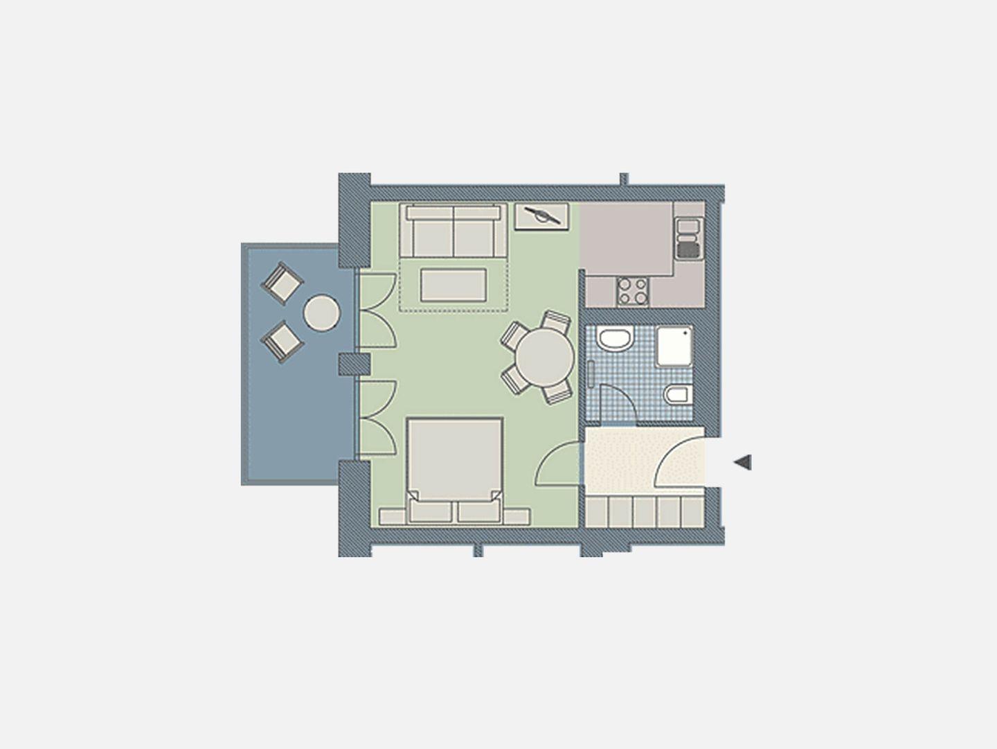 1-Zimmer-Wohnung mit Balkon, Bad mit Dusche, Küche mit Cerankochfeld, Backofen, Geschirrspüler und Mikrowelle, Sonstiges: LED-Fernseher, DVD-Player, Musikanlage, Fön, Nichtraucher, Haustiere nicht gestattet