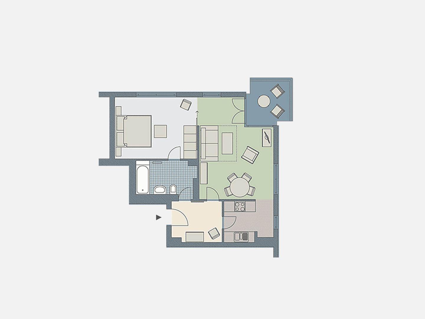 Dieses komfortabel eingerichtete Appartement überzeugt mit einem privaten Balkon mit seitlichem Meerblick. Die Küche ist voll ausgestattet und bietet neben einem Backofen mit Cerankochfeld, einen Geschirrspüler, eine Mikrowelle, einen Wasserkocher, eine Kaffeemaschine und einen Toaster. Im Wohnzimmer finden sich neben dem ausziehbaren Schlafsofa auch der LED-TV, der DVD-Player und die Musikanlage. Das Schlafzimmer liegt separat und ist mit einem Doppelbett eingerichtet. Das Badezimmer überzeugt mit einer Badewanne, einem Waschbecken, einem WC sowie einem großen Spiegel.