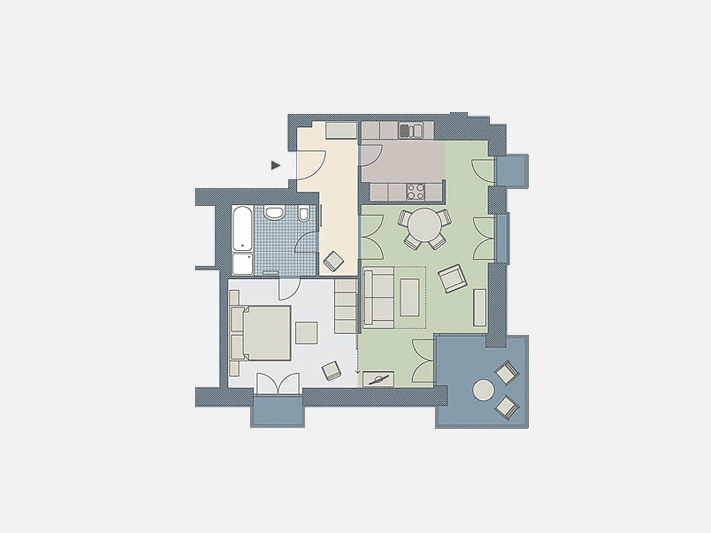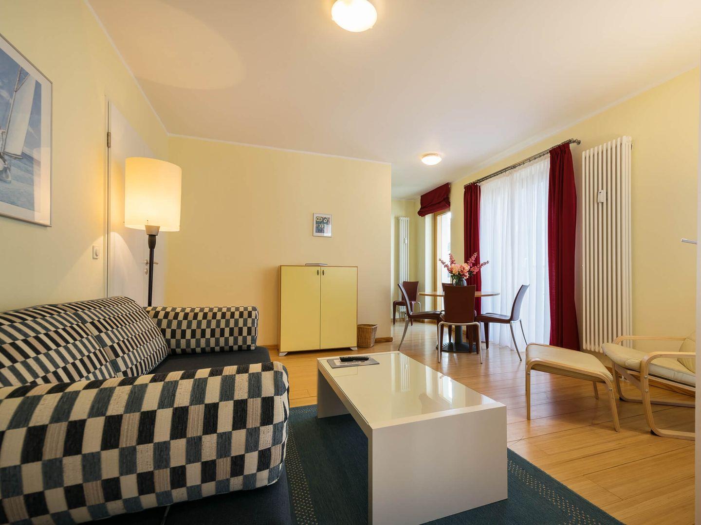 Dieses stilvoll eingerichtete Appartement überzeugt mit einem privaten Balkon. Die Küche ist voll ausgestattet und bietet neben einem Backofen mit Cerankochfeld, einen Geschirrspüler, eine Mikrowelle, einen Wasserkocher, eine Kaffeemaschine und einen Toaster. Im Wohnzimmer finden sich der LED-TV, der DVD-Player und die Musikanlage. Das Schlafzimmer liegt separat und bietet ein Doppelbett. Das Badezimmer überzeugt mit einer Badewanne, einer Dusche, einem Waschbecken, einem WC sowie einem großen Spiegel.