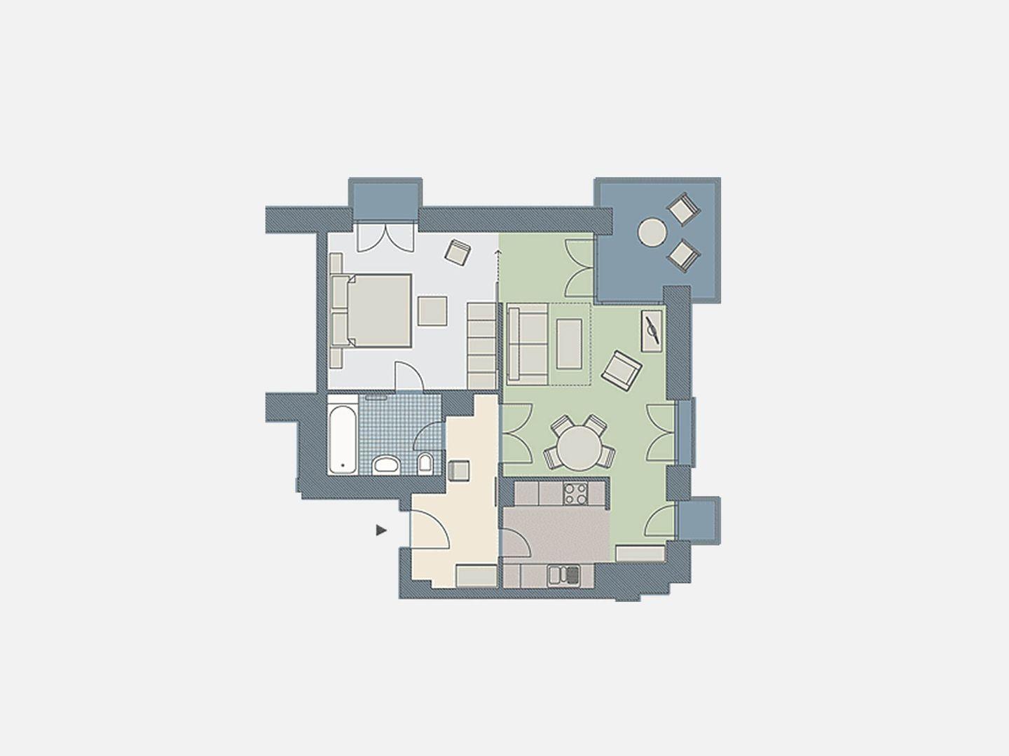 2-Zimmer-Wohnung mit Süd-Balkon, Bad mit Brause und Regendusche, voll ausgestatte Küche mit Markengeräten, Filter-, Pad- und Kapselkaffeemaschine, Mikrowelle, UHD TV-Gerät im Wohn- und Schlafzimmer, Blu-Ray-Player, Musikanlage, Nichtraucher, Hunde gestattet, keine anderen Haustiere