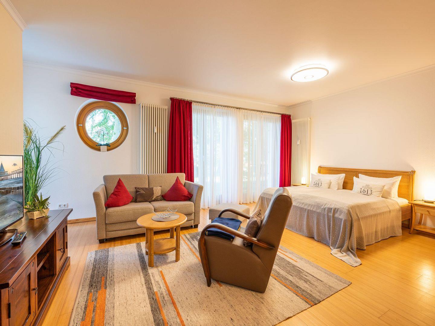 Modernes 1-Raum-Appartement mit Terrasse nur 300 m vom Strand in Seebad Heringsdorf.