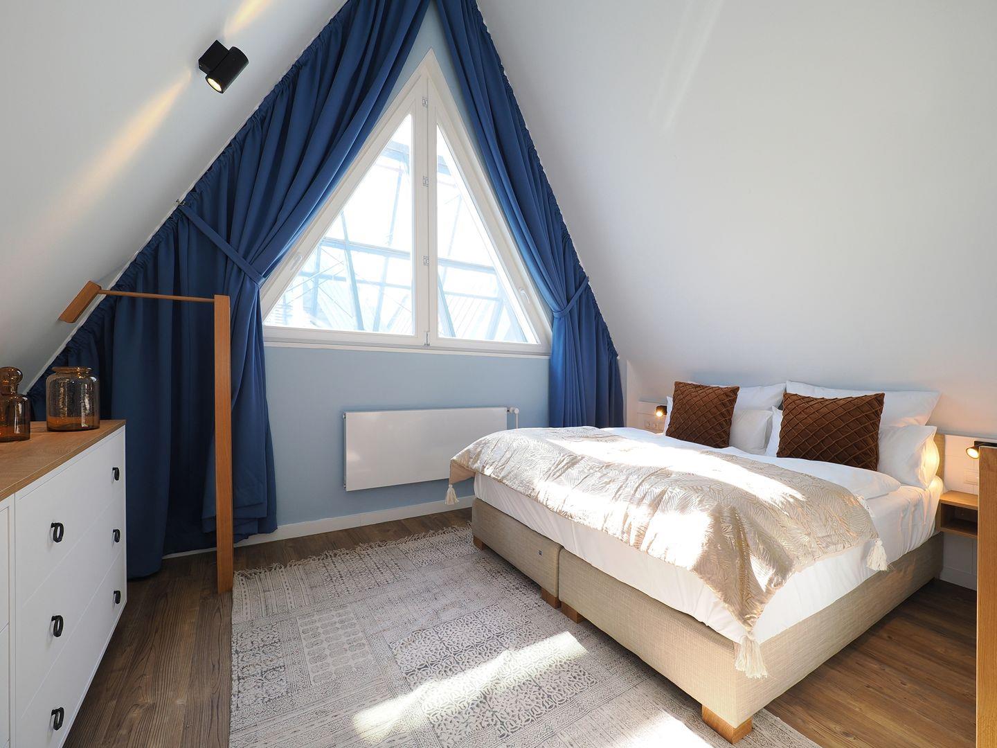 2-Raum Ferienwohnung mit Empore und Balkon, Bad mit Dusche, Küche mit Cerankochfeld, Backofen, Kühl-Gefrierkombination, Geschirrspüler und Mikrowelle, Smart-TV, Eckschlafsofa und Boxspringdoppelbett, Nichtraucher, Haustiere gestattet