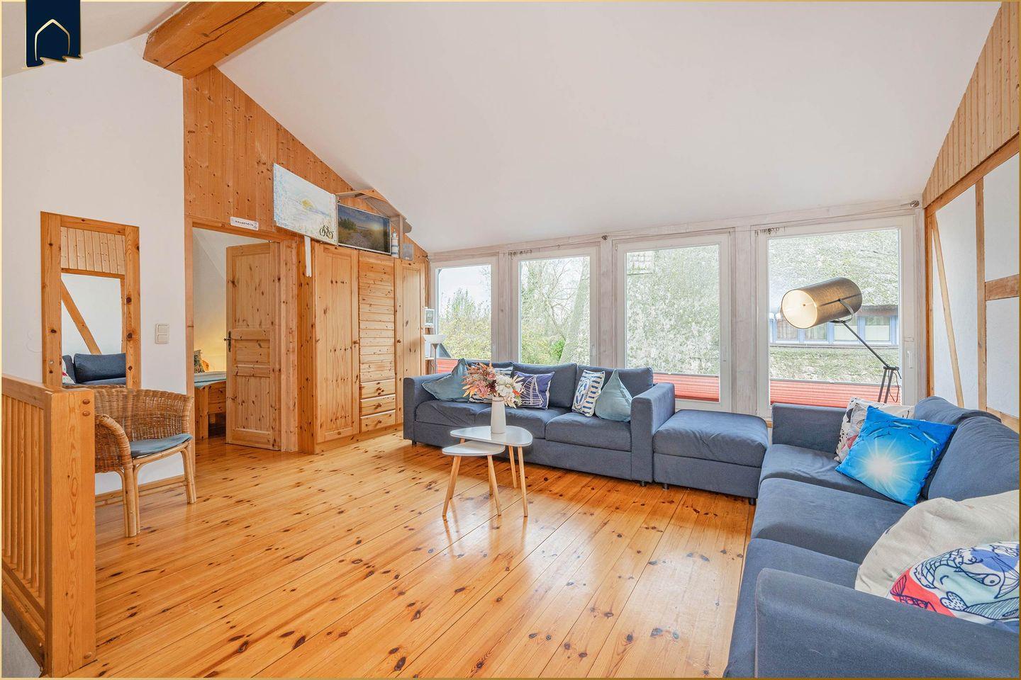 Auf zwei Etagen bietet das Ferienhaus vier komfortable Schlafzimmer, zwei moderne Badezimmer sowie eine voll ausgestattete Küche mit Backofen, Spülmaschine, Mikrowelle und Kaffeemaschine. Der gemütliche Wohnbereich mit Sofaecke, TV und Brettspielen lädt zu entspannten Abenden ein. Für Wellness sorgt die hauseigene Sauna zur Eigennutzung – besonders an kühleren Tagen ein echtes Highlight. Internet ist selbstverständlich vorhanden.