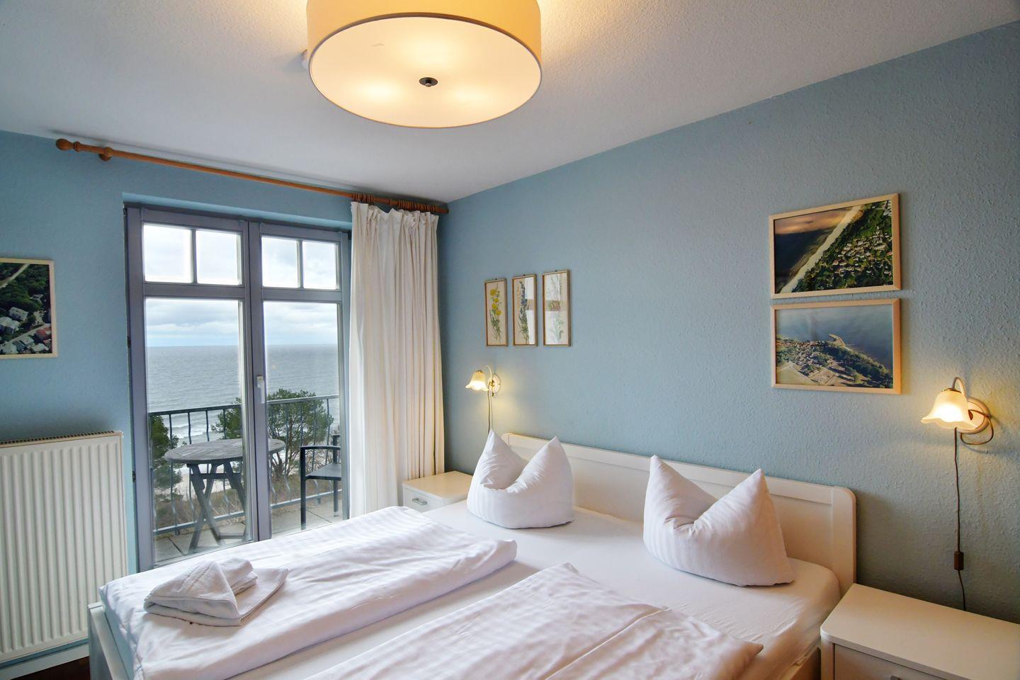 Das 59 m² große Appartement 07 befindet sich im 2.OG und das ganz Besondere ist der freie Ostseeblick von oben aus bodentiefen Fenstern. Sie verfügt über einen großen Wohnraum mit offener voll ausgestatteter Küchenzeile und Essplatz. Auch der Balkon geht zur Ostsee raus und besticht mit seinem unverbautem Blick auf die Ostsee. Ein Duschbad und zwei Schlafräume (Doppelbett und zwei Einzelbetten) sorgen dafür, dass sich 4 Personen rundum wohl fühlen können.. Es stehen kostenfreies WLAN, ein PKW-Stellplatz (Beschriftung: Schünemann 11) und ein Abstellraum für Fahrräder zur Verfügung. Gegen Gebühr können im Keller des Hauses Waschmaschine und Trockner genutzt werden. Haustiere sind auf Anfrage gestattet.