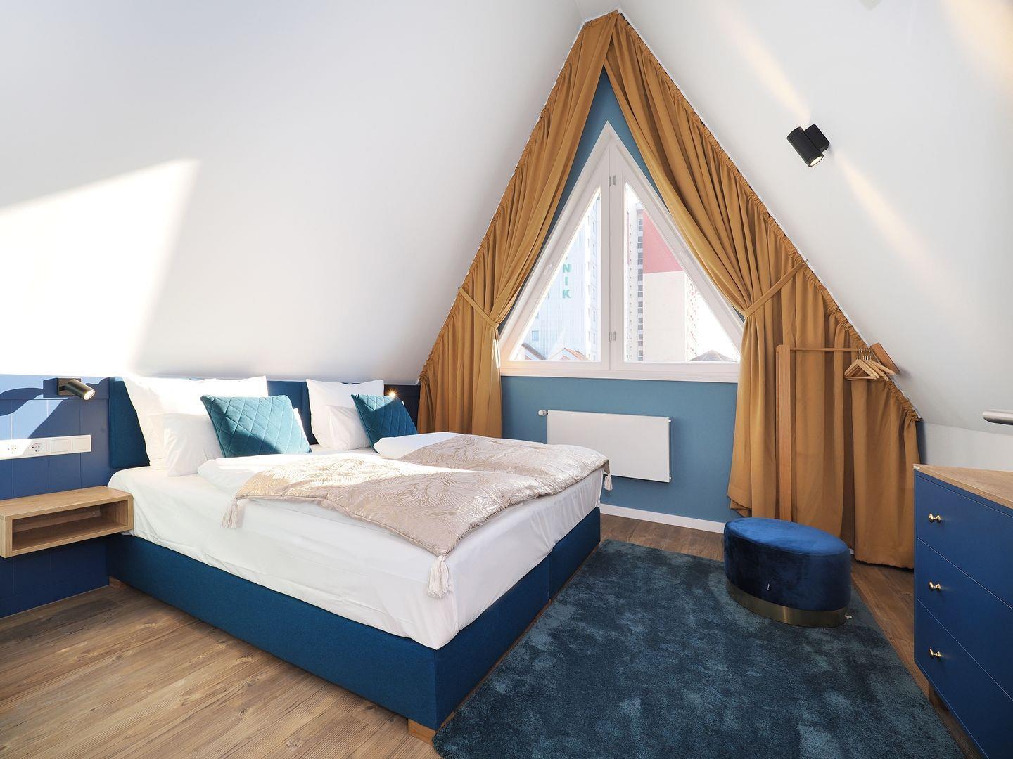 Entspannen Sie auf der Seebrücke Heringsdorf! Die 2023 renovierte, große 3-Raum Ferienwohnung ist auf zwei Ebenen konzipiert. Beide Schlafzimmer liegen auf der oberen Etage und sind vom darunter liegenden Wohnbereich aus über eine Treppe zu betreten. In jedem der beiden Schlafzimmer sorgt ein Doppelboxspringbett für erholsamen Schlaf. Im Wohnzimmer finden Sie genügend Einbauschränke für Ihre Garderobe und die bequeme Eckschlafcouch sorgt für kuschelige Gemütlichkeit. Über den Smart-TV können Sie am Abend die Fotos des Tages betrachten oder Ihre Lieblingsmusik hören. Der sich dem Wohnbereich unmittelbar anschließende, offene Küchenbereich mit dem großzügigen Essplatz ist mit Ceranfeld, Backofen, Geschirrspüler, Kühl-Gefrierkombination, Spülmaschine, Toaster, Mikrowelle, Wasserkocher und alle erforderliche Küchenutensilien ausgestattet. Zwei Badezimmer überzeugen mit ebenerdigen Duschen, Waschbecken und WC sowie einem großen Spiegel mit Kosmetikspiegel. Für Ihren Komfort sind Bettwäsche, Handtücher, Reinigungs- und Waschmittel als Erstausstattung inklusive. Vom Wohnbereich haben Sie einen direkten Ausgang auf die Terrasse mit Sitzgarnitur, wo Sie den Sonnenaufgang genießen können. Der WLAN-Zugang ist kostenfrei nutzbar. Auf Wunsch stellen wir ein Kinderreisebett und einen Kinderhochstuhl gegen einen Aufpreis zur Verfügung. Vor dem Haus gibt es nur Be- und Endladeparkplätze, als Alternative bieten wir für das örtliche Parkhaus in Heringsdorf ermäßigte Parkkarten gemäß aktueller Preise. Die Parkkarte erhalten Sie bei Anreise in unserem Servicebüro. Haustiere sind in dieser Ferienwohnung herzlich willkommen, hierfür berechnen wir Gebühr gemäß aktueller Preise. Im Untergeschoss der Seebrücke steht Ihnen ein abschließbarer Fahrradraum sowie ein kleiner Waschraum mit Waschmaschine, Trockner, Bügelbrett und Bügeleisen kostenfrei zur Verfügung.
