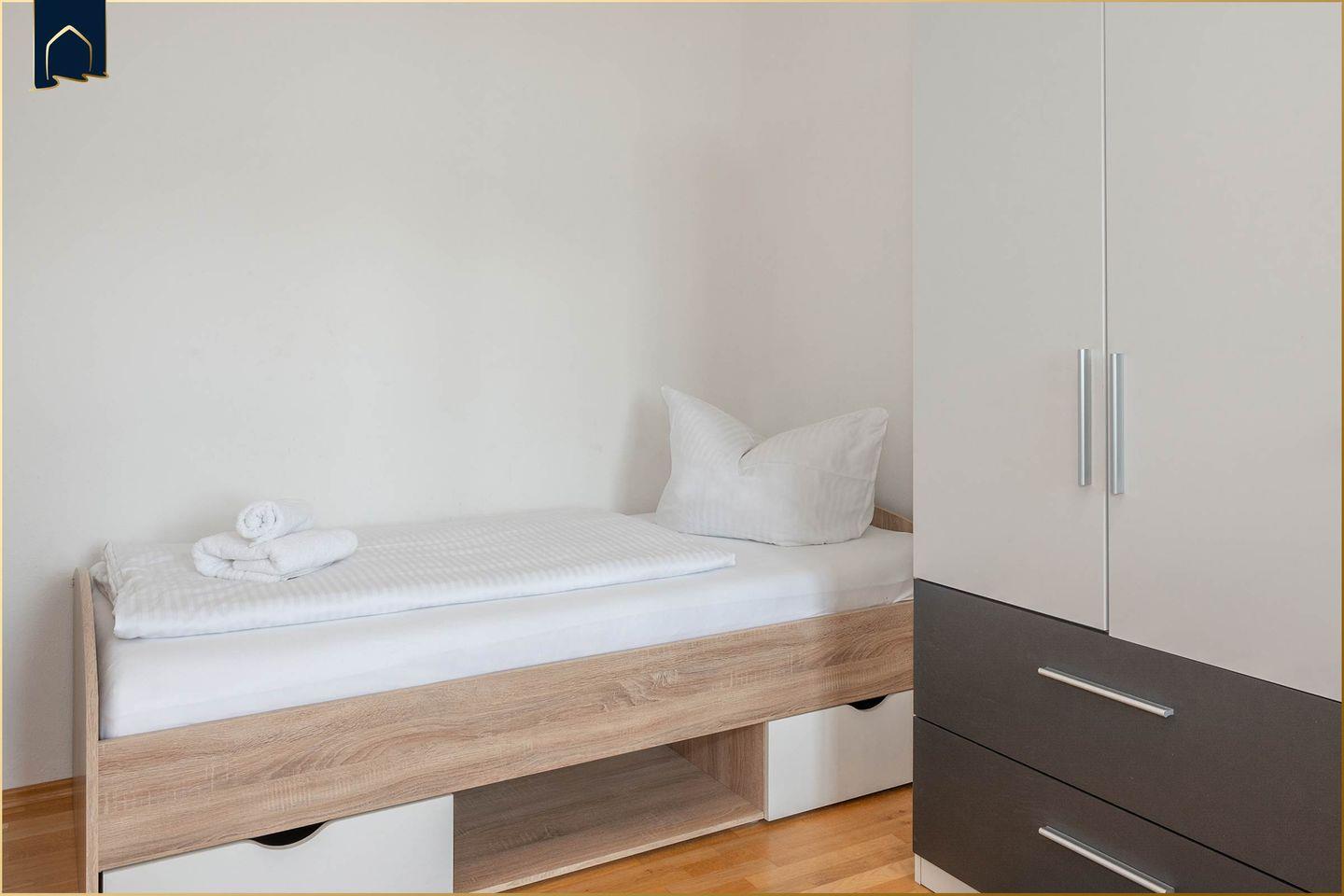 Das Tageslichtbad ist mit Dusche, Badewanne und Waschbecken ausgestattet – hier beginnt jeder Urlaubstag erfrischend. Der Essbereich mit großem Esstisch bietet ausreichend Platz für gemeinsame Mahlzeiten. Ein Ganzkörperspiegel, eine Garderobe, Kommoden und Sichtschutz an allen Fenstern sorgen für Wohnkomfort auf hohem Niveau. WLAN, ein Schreibtisch sowie ein Radio runden das Ausstattungspaket ab.