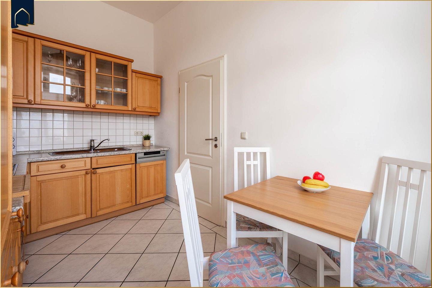 Die Wohnung verfügt über zwei gemütliche Schlafzimmer, ein modernes Bad mit Dusche und Badewanne sowie ein helles, offenes Wohnzimmer mit bequemer Sofaecke. Der angrenzende Essbereich lädt zu gemeinsamen Mahlzeiten ein – ob drinnen oder draußen auf dem geschlossenen Balkon/Terrassenbereich. Für den täglichen Komfort stehen Ihnen außerdem ein Geschirrspüler, Mikrowelle, Kaffeemaschine, Wasserkocher, Toaster sowie viele weitere Küchenutensilien zur Verfügung. Sichtschutz an allen Fenstern, ein Ganzkörperspiegel sowie zahlreiche Ablagemöglichkeiten sorgen für ein angenehmes Wohngefühl.