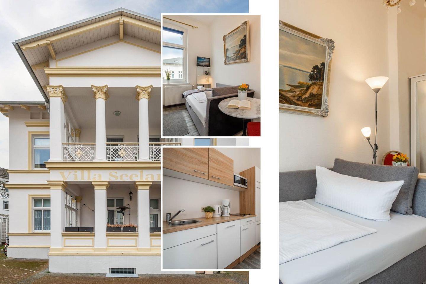 Villa Seeland App. 01 im Seebad Heringsdorf bietet auf 13 m² eine komfortable Unterkunft mit voll ausgestatteter offener Küche, WLAN, TV und Laminatboden. Die Parterre-Lage ermöglicht einen schnellen Zugang zum Sandstrand, der nur 100 Meter entfernt ist. Einkaufsmöglichkeiten, Restaurants und öffentlicher Nahverkehr befinden sich im Umkreis von 50 Metern. Haustiere sind willkommen.