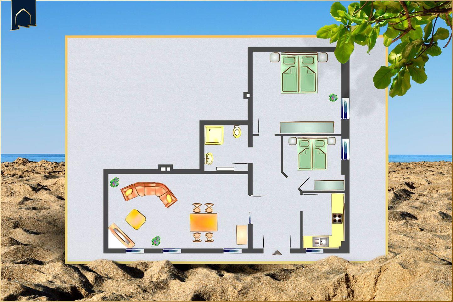Mit zwei separaten Schlafzimmern und Platz für bis zu vier Personen ist die Wohnung ideal für Familien, Paare oder Freunde. Die moderne Küche ist voll ausgestattet mit Herd, Backofen, Mikrowelle, Kühlschrank, Gefrierfach, Spülmaschine, Kaffeemaschine, Toaster, Mixer, Wasserkocher und allen nötigen Küchenutensilien. Hier wird Kochen im Urlaub zum Vergnügen. Das barrierefreie Badezimmer verfügt über eine großzügige Dusche und einen Haartrockner. Auch eine Waschmaschine und ein Trockner stehen Ihnen zur Verfügung – perfekt für längere Aufenthalte oder Familien mit Kindern.