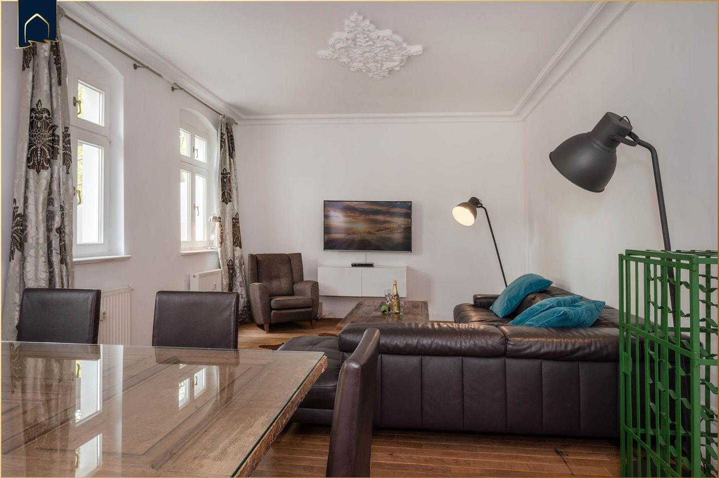 Diese 85?m² große Ferienwohnung bietet Ihnen die ideale Kombination aus modernem Komfort, Strandnähe und entspannter Atmosphäre. In nur 150 Metern erreichen Sie die Ostsee – perfekt für einen morgendlichen Spaziergang oder einen Tag am Wasser. Der großzügige Wohnbereich mit gemütlicher Sitzecke und TV lädt nach einem erlebnisreichen Tag zum Ausklingen ein. Ein CD-/DVD-Player sowie ein Radio sorgen für zusätzliche Unterhaltung. Die lichtdurchflutete Terrasse mit Gartenmöbeln und direktem Zugang zum Garten ist der ideale Ort für ein entspanntes Frühstück im Freien.