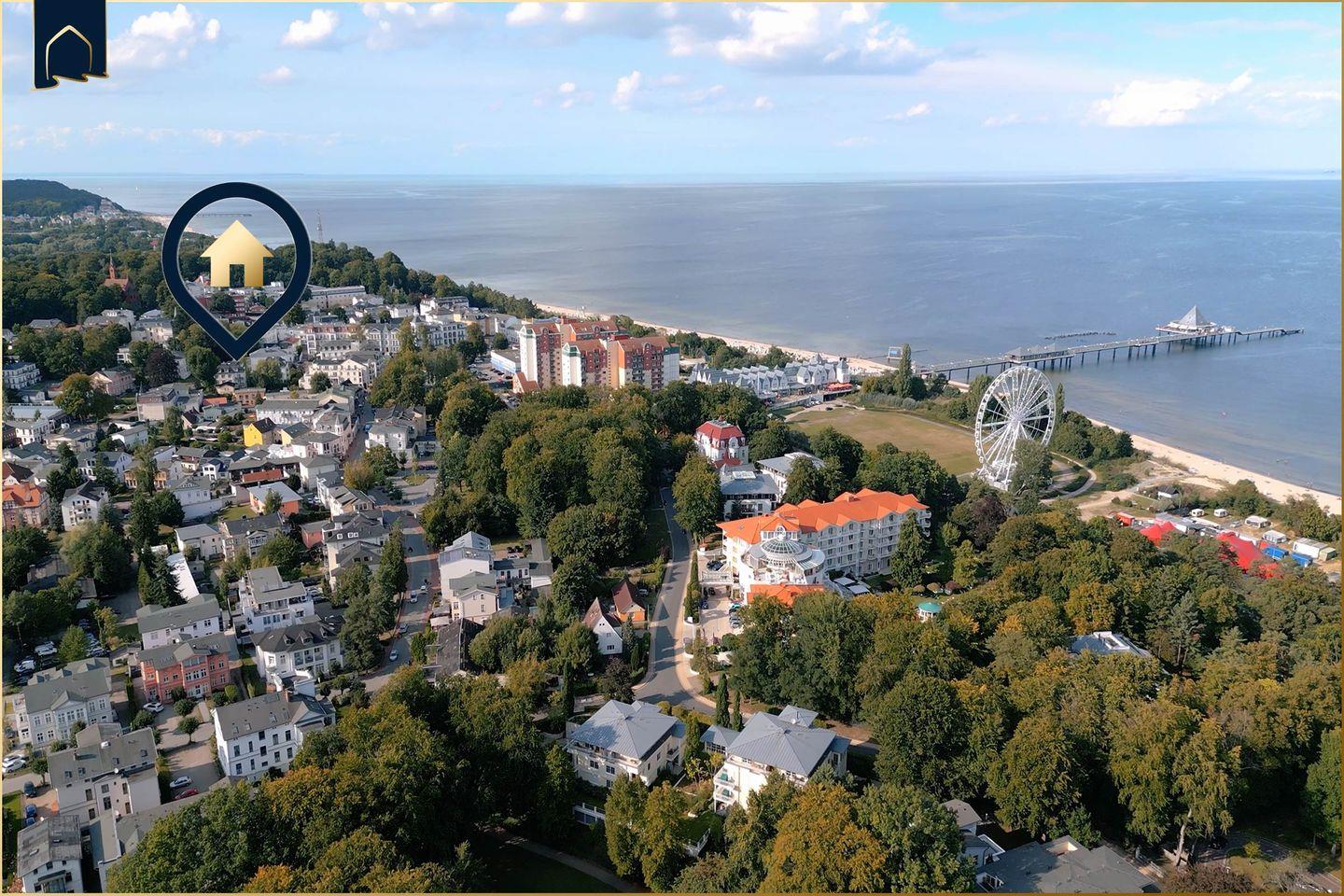 Die Lage ist hervorragend: In nur wenigen Gehminuten erreichen Sie nicht nur den Strand, sondern auch Restaurants (100?m), Einkaufsmöglichkeiten (100?m), einen Supermarkt sowie einen Arzt und Geldautomaten. Auch der Bahnhof ist nur 750?Meter entfernt – die Wohnung ist somit auch ohne Auto gut erreichbar, bietet aber zugleich einen privaten Parkplatz. Die Umgebung eignet sich wunderbar für Strandtage, Radtouren und Ausflüge zu den vielen Sehenswürdigkeiten auf Usedom – wie zum Beispiel dem Golfplatz (6,5?km), der nur wenige Autominuten entfernt liegt.