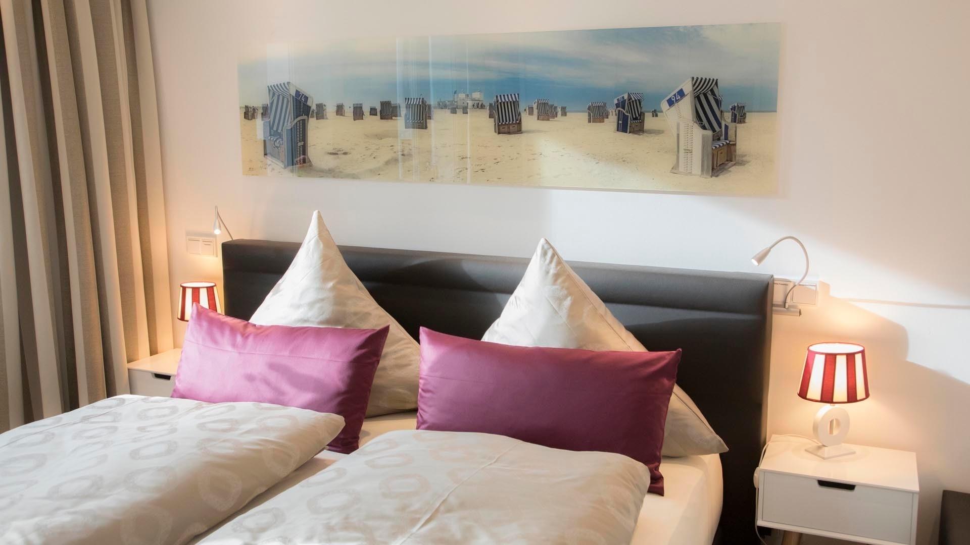 Unser 101 qm Apartment im 2. O.G. verfügt über 2 Schlafzimmer, jeweils mit Kingsize Boxspringbett, Flachbildfernseher, Sonos Musiksystem und großem Schrankangebot für ihr Gepäck.