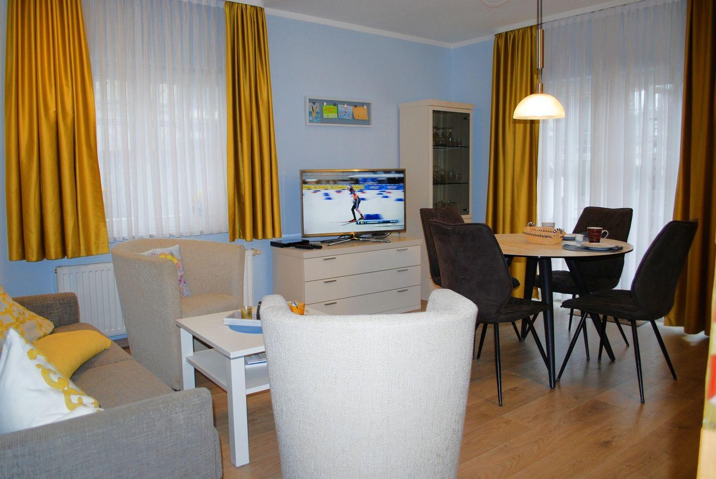 Moderne Ferienwohnung mit Terrasse und kostenfreiem WLAN im Seeheilbad Ahlbeck, ideal für erholsame Tage an der Ostsee.