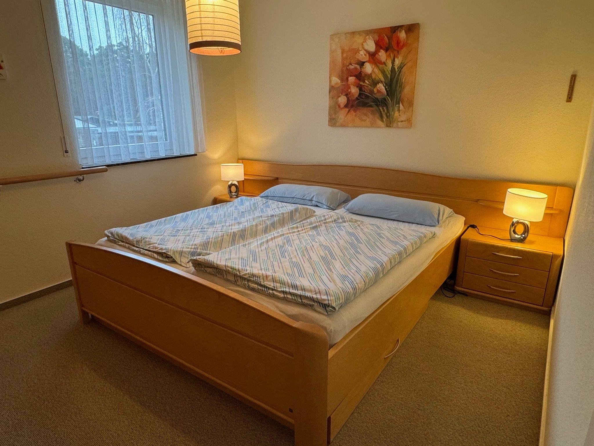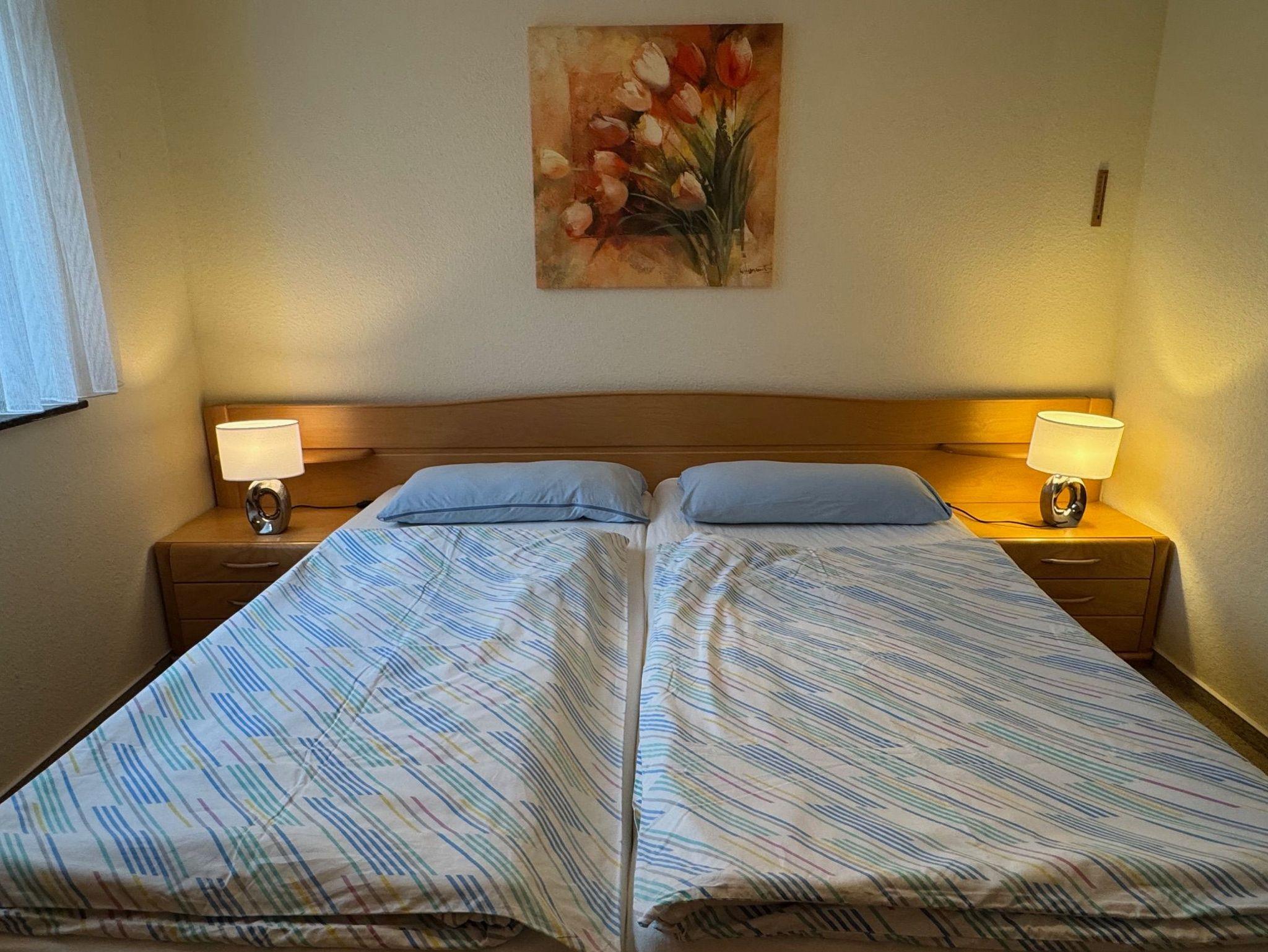 Ein separates Schlafzimmer mit einem gemütlichen Doppelbett sorgt für erholsame Nächte, während der helle Wohn- und Essbereich mit Schlafsofa eine zusätzliche Aufbettung für zwei weitere Gäste bietet. Der Wohnbereich ist offen gestaltet und lädt zum Verweilen ein ob bei einem Film auf dem Smart-TV, einem gemeinsamen Essen oder einfach zum Entspannen. Das moderne Badezimmer ist mit Dusche und WC ausgestattet, eine eigene Waschmaschine sorgt für zusätzlichen Komfort auch bei längeren Aufenthalten. WLAN steht Ihnen selbstverständlich kostenfrei zur Verfügung, und eine Heizung macht die Wohnung zu jeder Jahreszeit angenehm bewohnbar.