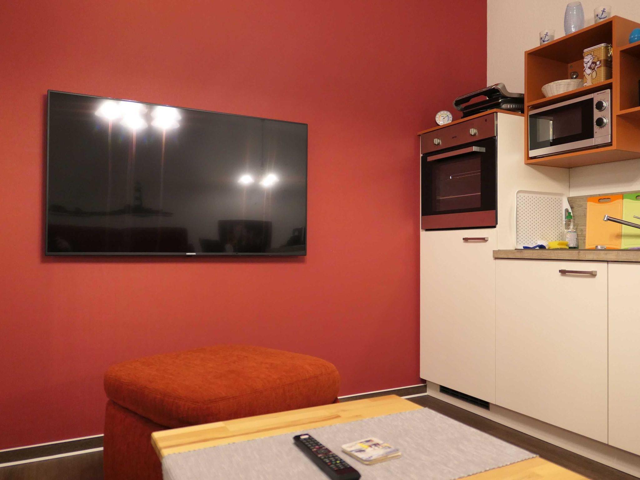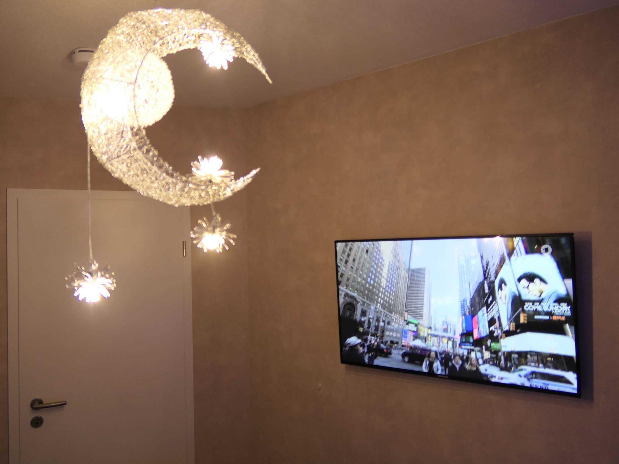 Kleiderschrank und großem SAT-TV (43 Zoll), romantische Beleuchtung