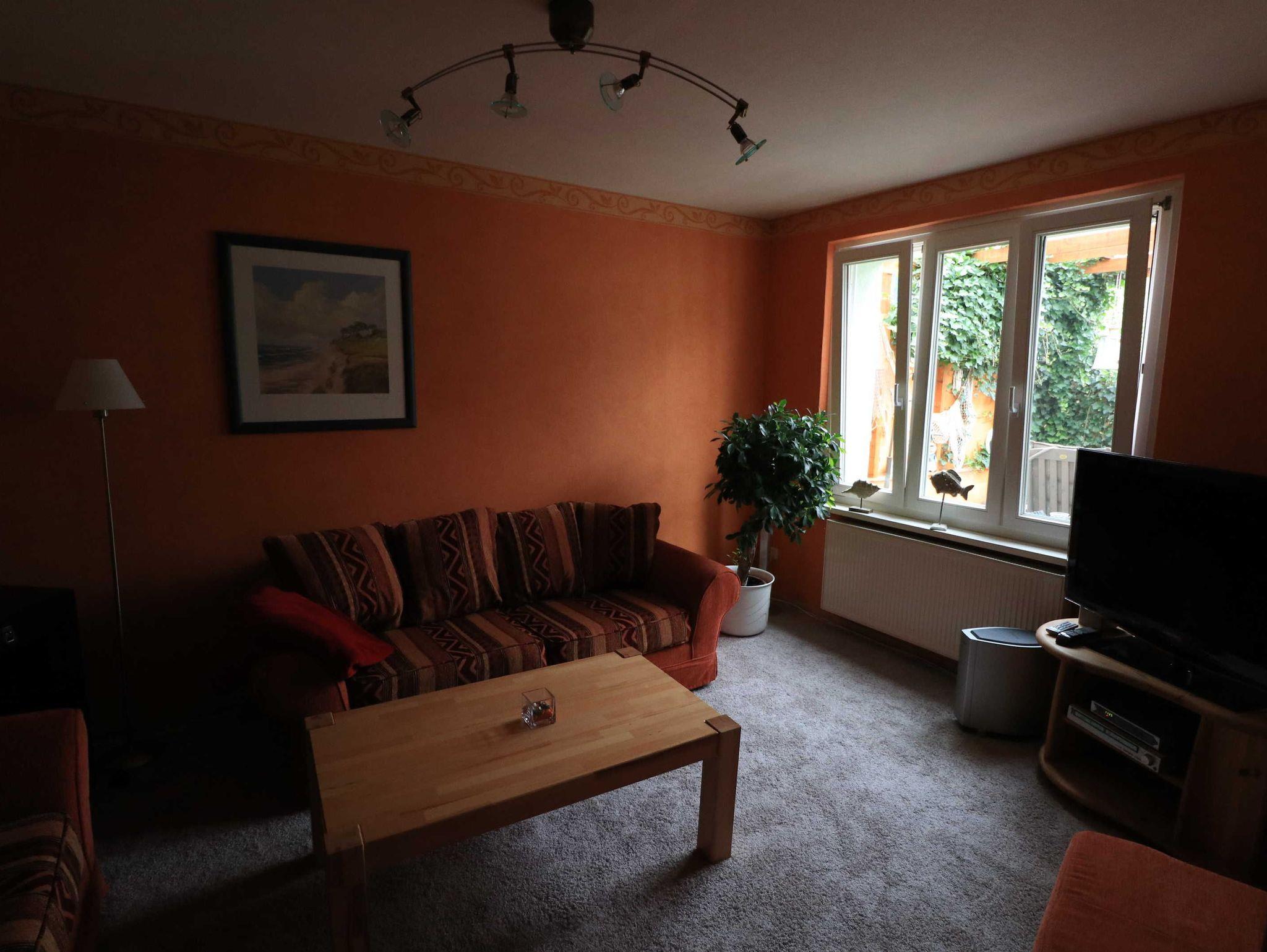 Geräumige und modern eingerichtete Ferienwohnung im Hochparterre (Anbau an der Villa) auf einem abgeschlossenen Grundstück. Die sanitäre Einrichtung besteht aus zwei Duschen sowie einem WC. Die überdachte Terasse lädt auch bei schlechtem Wetter zum Verweilen ein. Für die kleinsten Gäste kann bei Bedarf ein Kinderreisebett und ein Hochstuhl bereitgestellt werden. Einen gemütlichen Fernsehabend verspricht der digitale Fernseher. Und läßt das Fernsehprogramm zu wünschen übrig, können auch DVDs ausgeliehen werden. Internetzugang (WLAN) ist in der Wohnung vorhanden.