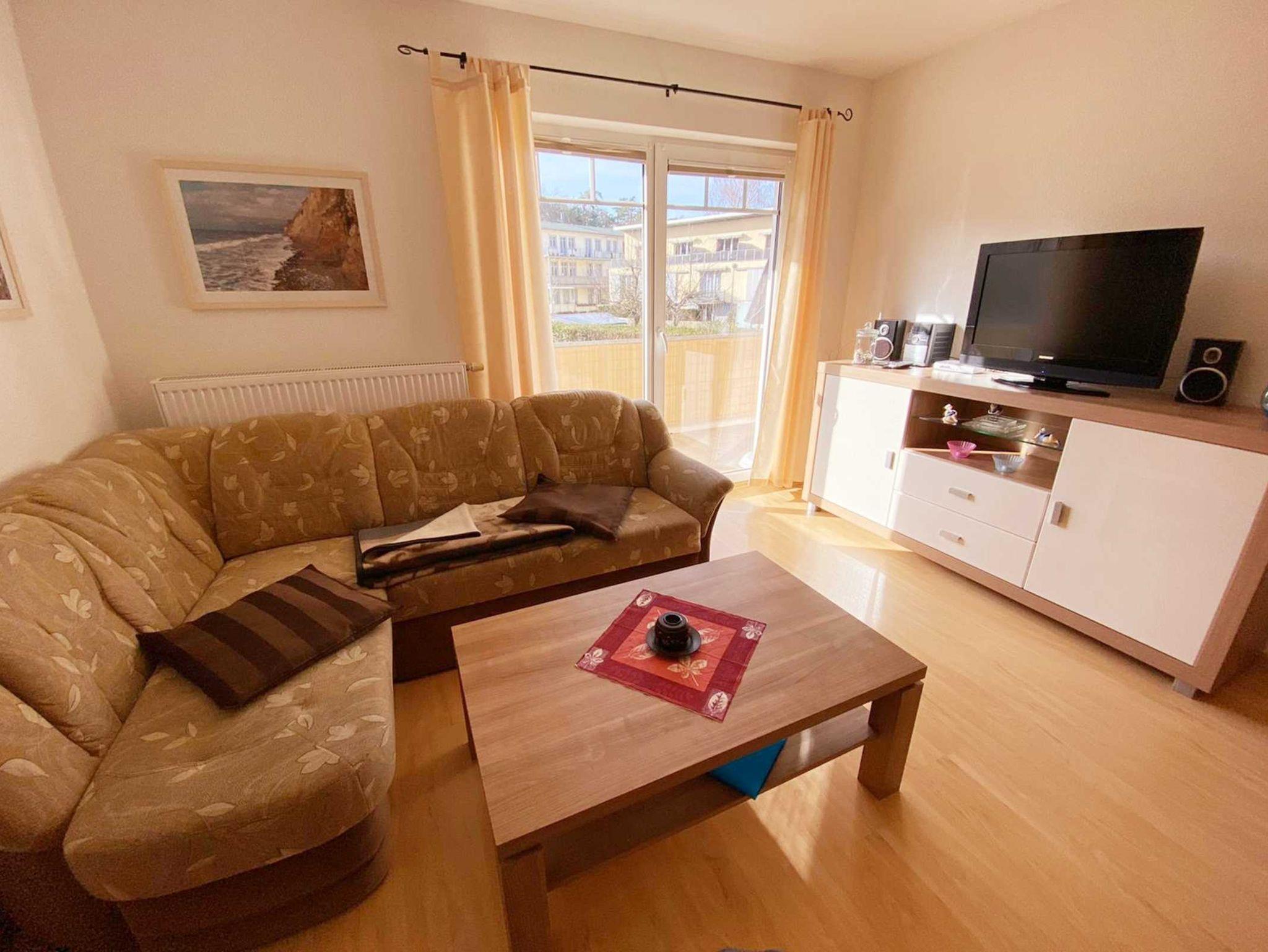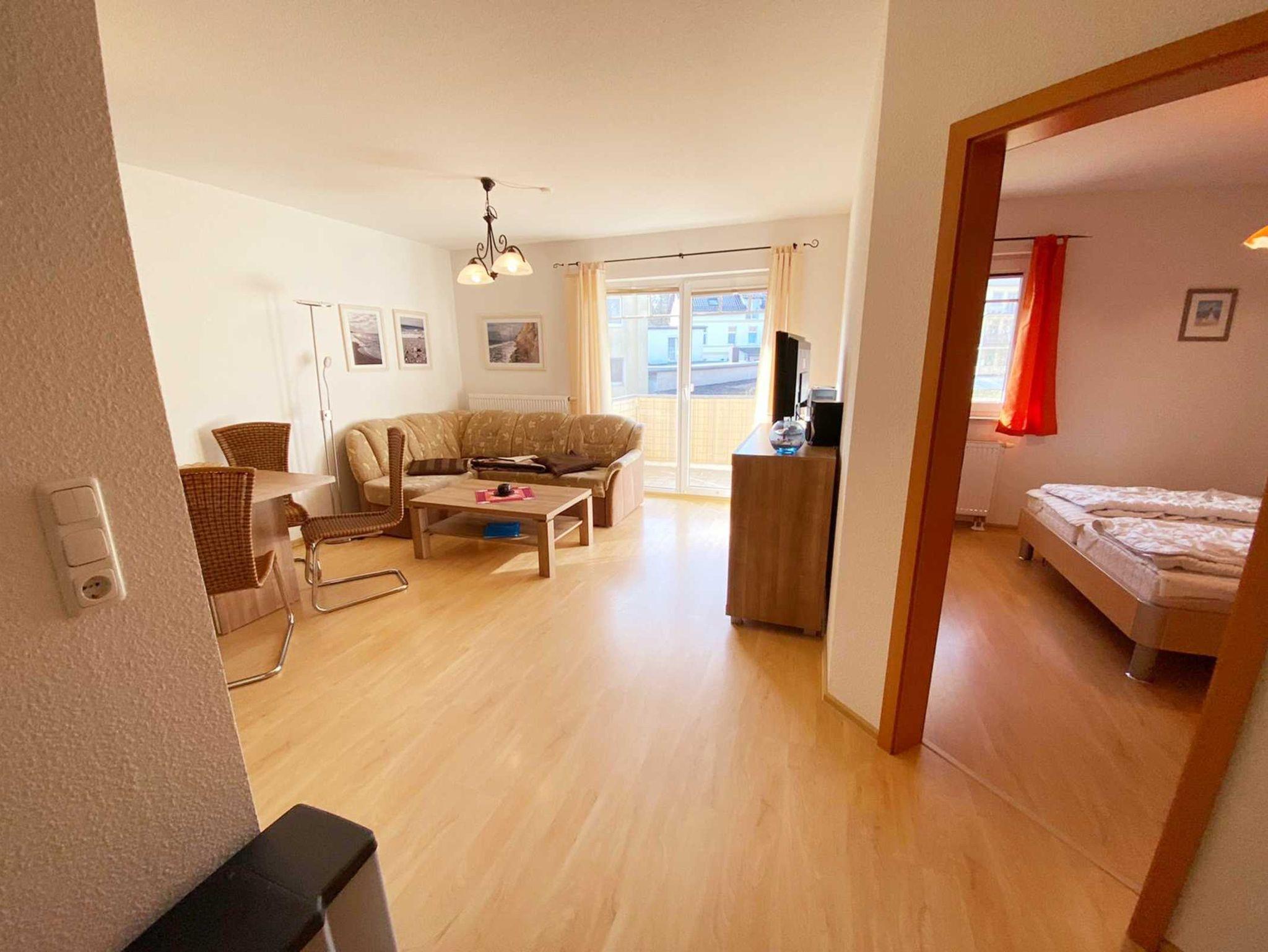 Nur 350m vom Strand entfernt liegt diese gemütlich und modern eingerichtete 2-Raum-Wohnung im 1. OG mit ca. 48 m² Wohnfläche und einem sonnigen Südbalkon. Die sehr familienfreundliche Wohnung kann mit bis zu 4 Personen genutzt werden. Ein separates Schlafzimmer und eine 1,40x2,00 m große Schlafcouch, bieten Platz für 4 Personen. Praktisch erreichbar befindet sich vor dem Objekt ein abschließbarer Außenabstellraum, der bis zu 4 Fahrrädern Platz o.ä. bietet. Der Wohnung ist ein kostenloser Stellplatz Nr. 9 zugeordnet. WLAN steht kostenlos zu Verfügung.