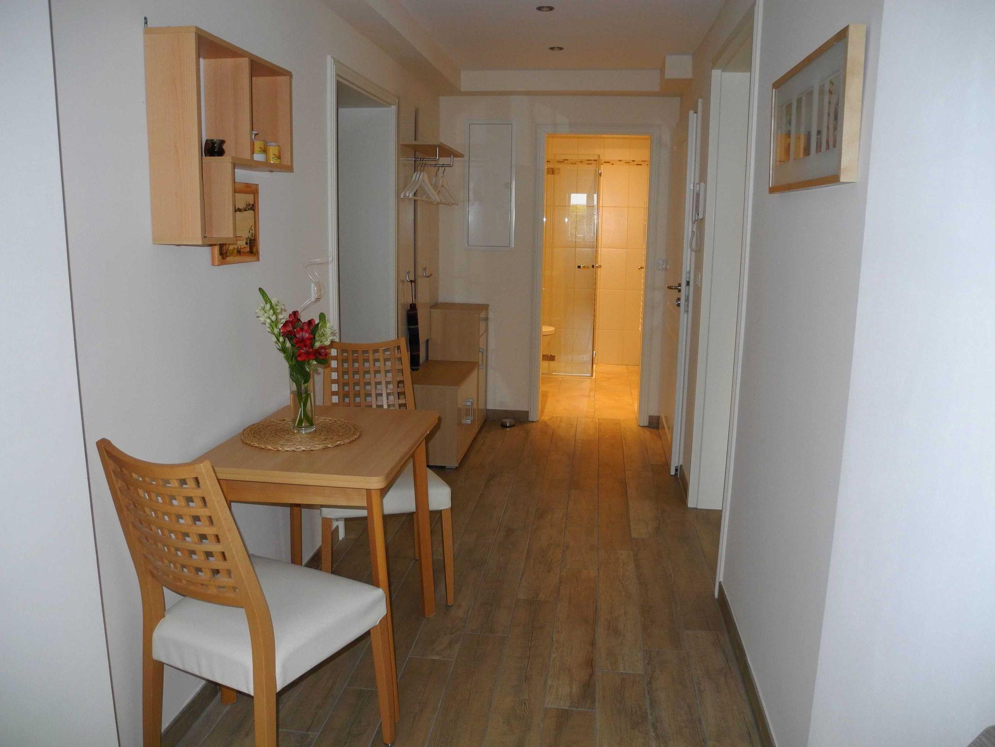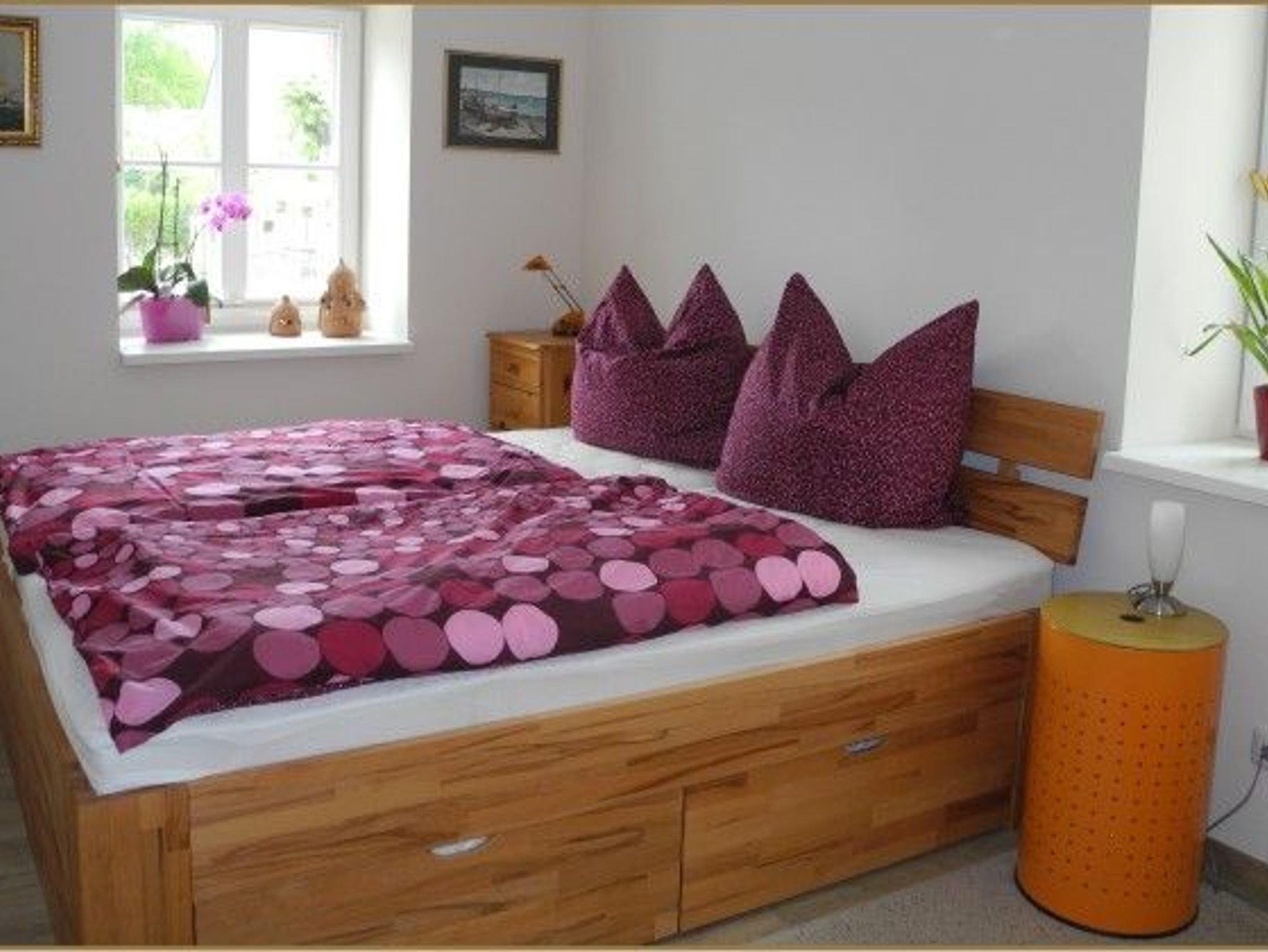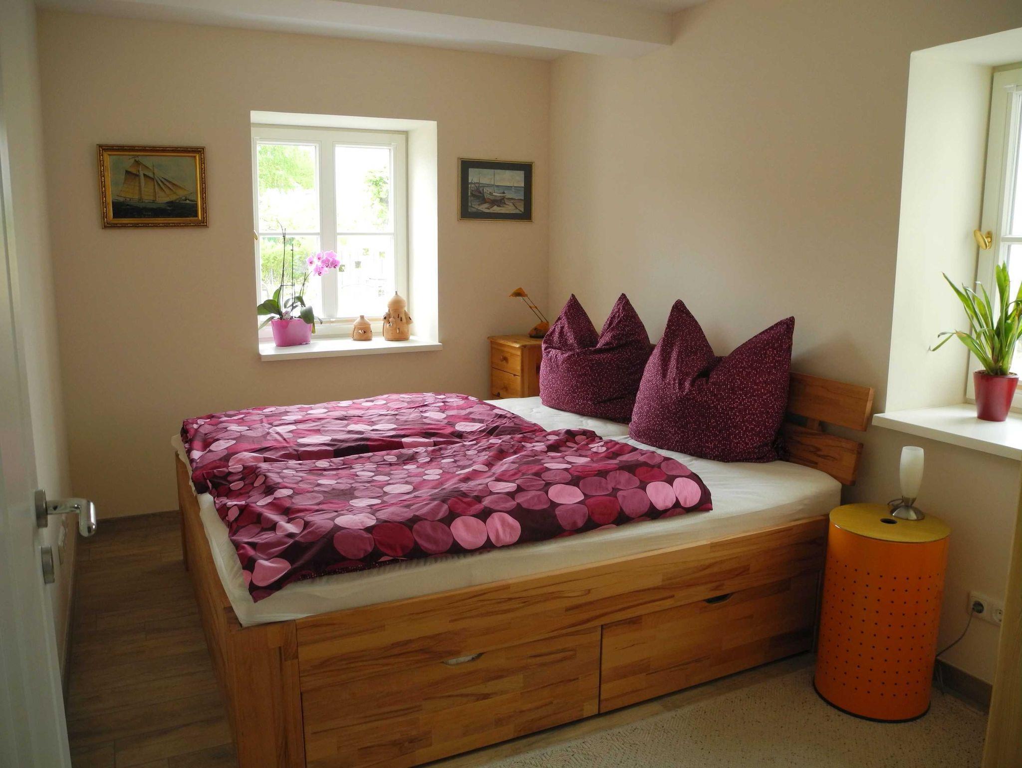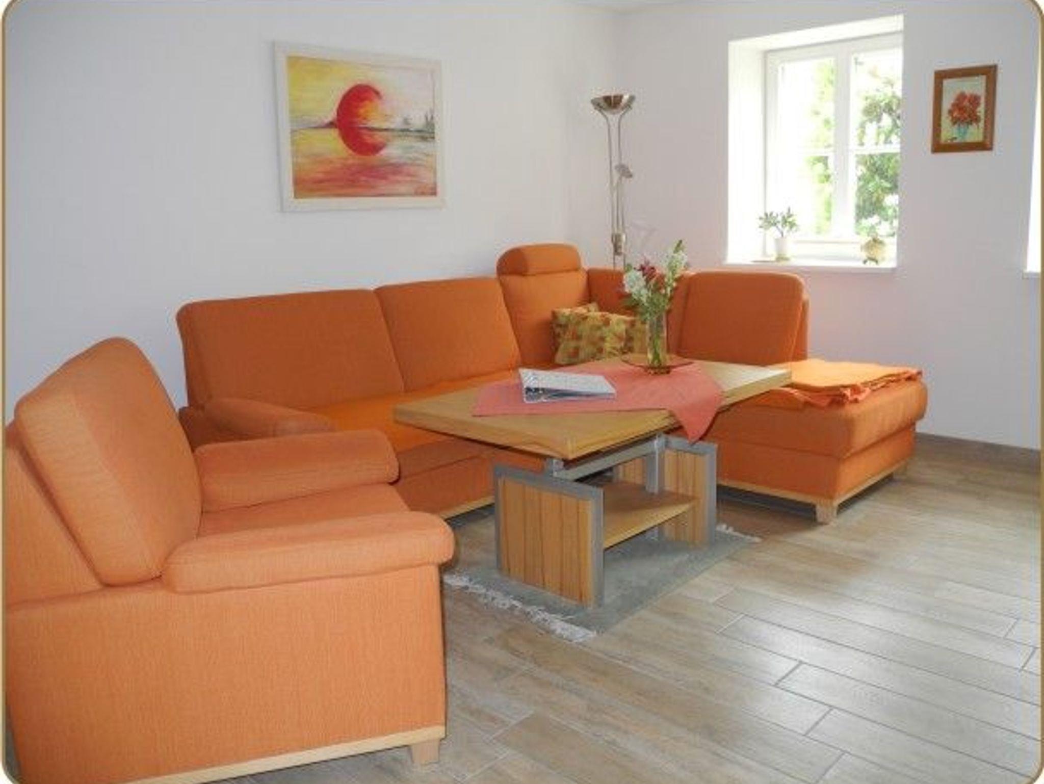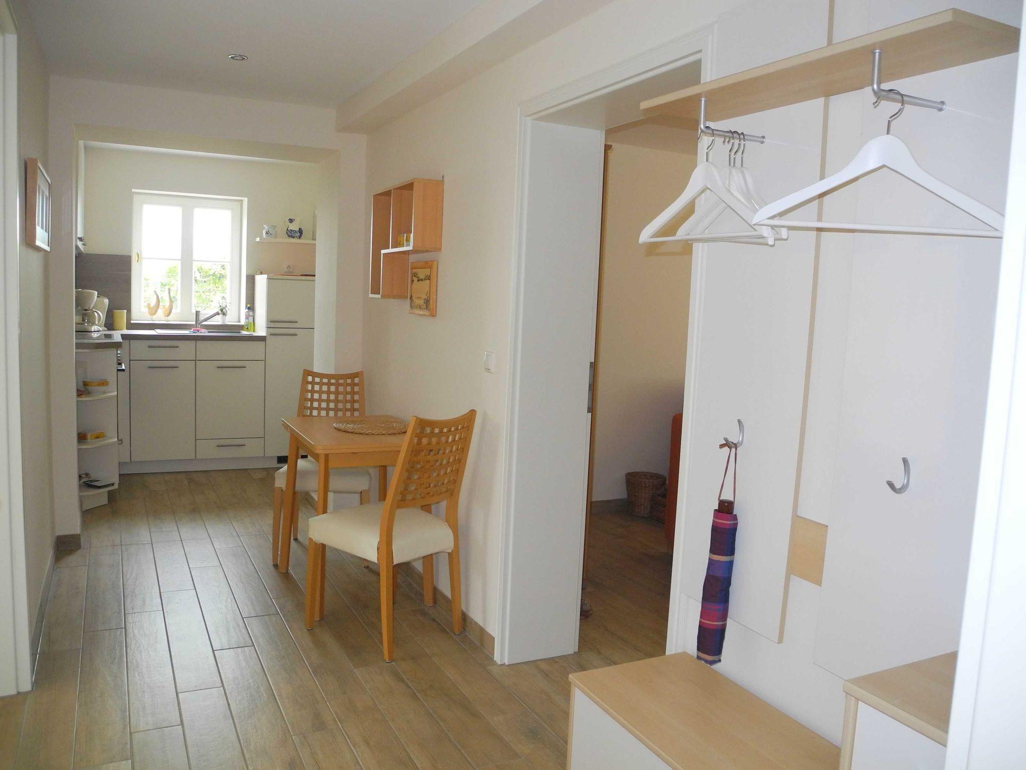 Die Ferienwohnung ist ebenerdig (barrierefrei), komplett mit Fußbodenheizung ausgestattet, hat ein Schlafzimmer, ein Wohnzimmer, ein modernes Bad, eine offene Küche mit Sitzplätzen und einen Flur. Ein sehr bequemes Bett mit hochwertigen Matratzen u. Federböden in 1,80 m Breite sorgt für guten Schlaf. Mit einer ausziehbaren Doppelcouch im Wohnzimmer stehen Ihnen 2 weitere Schlafmöglichkeiten zur Verfügung. Für Kleinkinder können Sie ein Kinderbett (Reisekinderbett mit Matratze) dazu buchen. Bitte denken Sie daran, das Bettzeug dafür selbst mitzubringen. Wenn Sie einen Kinderstuhl benötigen, teilen Sie uns das bitte mit. Diesen können wir für Sie ausleihen.