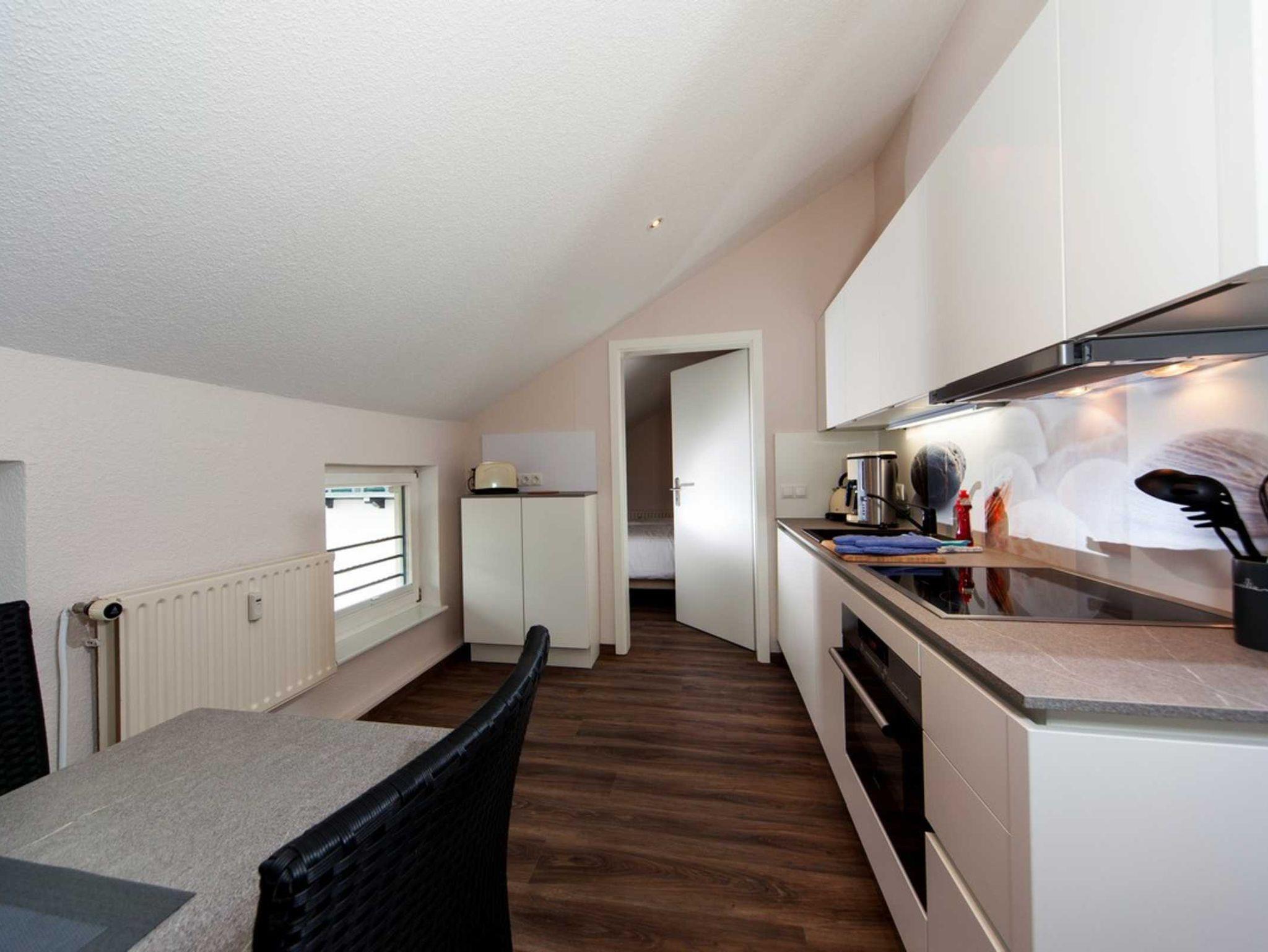 47 m² unterm Dach bieten Ihnen ein Schlafzimmer mit Doppelbett, 1 Wohnzimmer mit Schlafcouch, ein Badezimmer mit Dusche,Waschtisch, WC, Handtuchheizkörper und Fön sowie eine voll ausgestattete Küche mit Essplatz für max. 4 Personen.