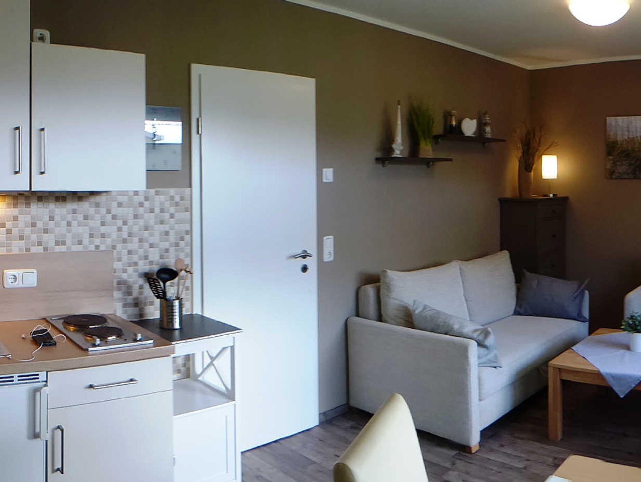 Die 2 zimmer Ferienwohnung befindet sich im 1.Obergeschoss und verfügt über ein Wohnzimmer mit Couch und -Fernseher, eine offene Küche mit Kühlschrank und 2 Kochplatten, ein Schlafzimmer mit einem Doppelbett und einem Kleiderschrank sowie ein Bad mit Dusche, WC und Waschtisch. Zu der Ferienwohnung gehört ein PKW-Stellplatz und es steht Ihnen kostenfrei W-LAN zur Verfügung.