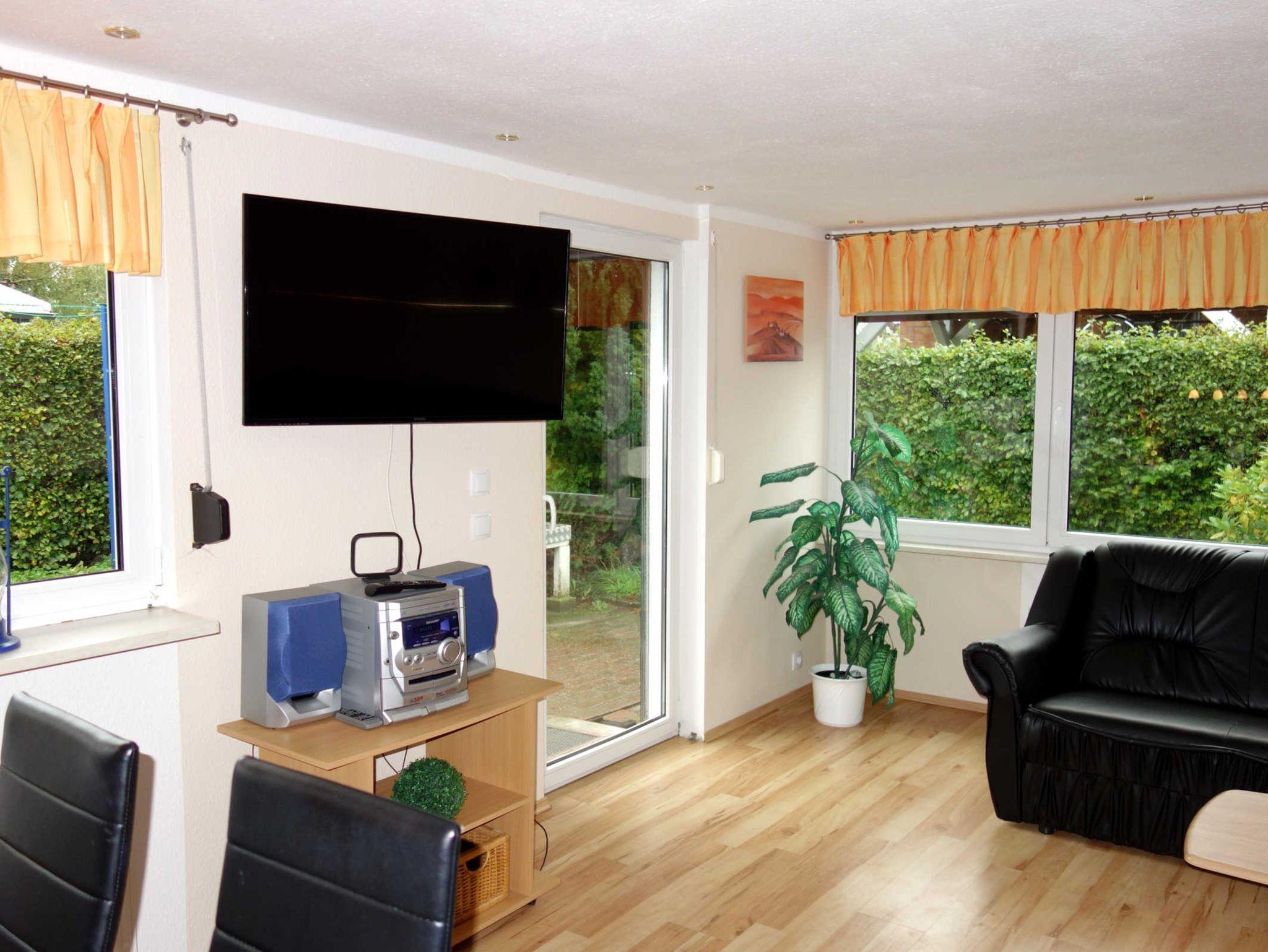 80 m² großes Ferienhaus mit Platz für bis zu 6 Personen. Das helle Wohnzimmer verfügt über eine Couch, einen Sessel, ein TV-Gerät, einen Kaminofen sowie eine Essecke mit Tisch und 6 Stühlen. Die Küche ist ausgestattet mit einem Herd (4 Kochplatten), einem Backofen, einem Geschirrspüler, einem Kühlschrank mit Gefrierfach, einer Kaffeemaschine und einem Wasserkocher. Das Bad ist mit Fußbodenheizung, Whirlpoolwanne, Dusche, WC und einem Fenster ausgestattet. Ein Schlafzimmer ist mit einem Doppelbett und einem Kleiderschrank ausgestattet, das andere Schlafzimmer verfügt neben einem Kleiderschrank über zwei ausziehbare Einzelbetten (entspricht 4 Schlafplätzen). Auch ein Kinderhochstuhl und ein Kinderreisebett sind vorhanden. Ein Hauswirtschaftsraum mit einer Waschmaschine gehört ebenfalls zur Unterkunft. Der grüne Innenhof verfügt über eine gepflasterte Terrasse und einen Grillofen. Zwei PKW-Stellplätze sind ebenfalls auf dem geschlossenen Grundstück vorhanden.