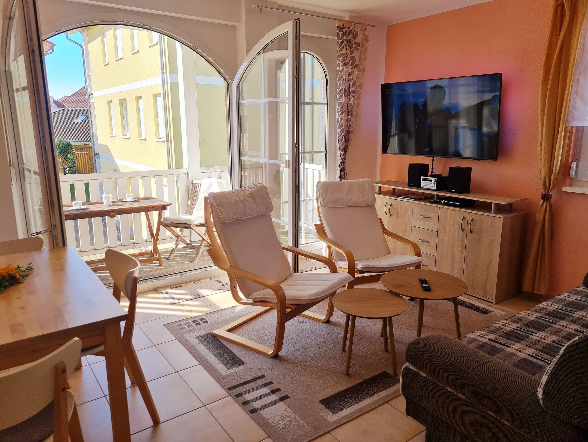 Gemütliche Ferienwohnung Seeschwalbe in Graal-Müritz, nah am Strand und Wald, mit Balkon und moderner Ausstattung.
