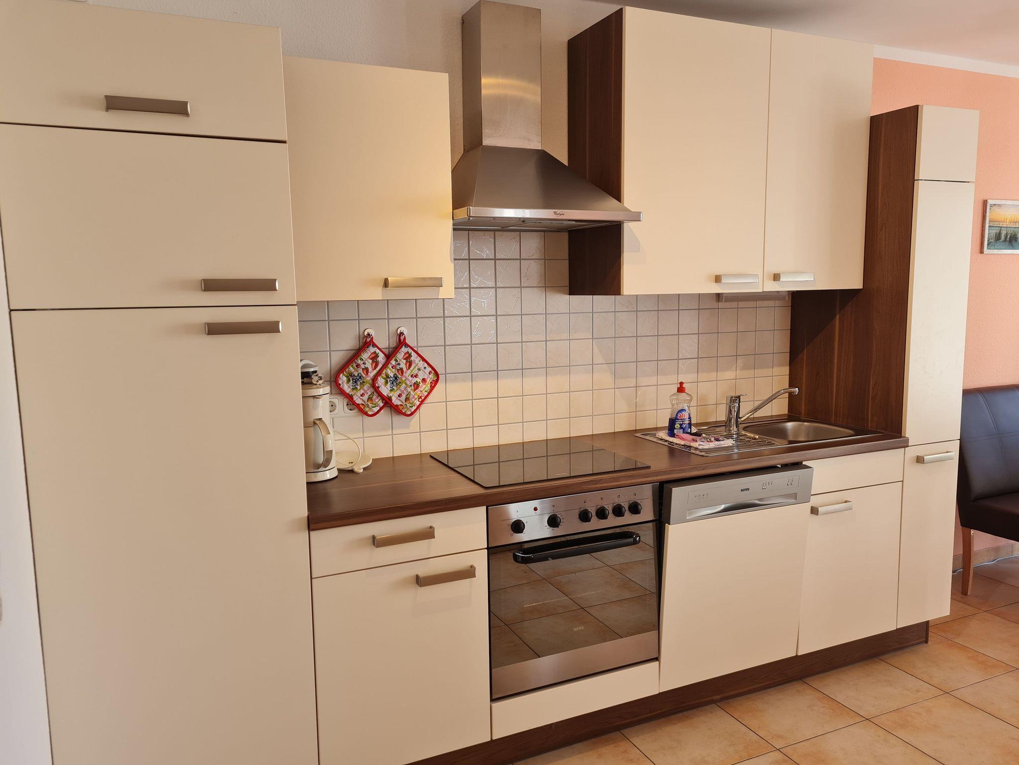 • Küche und Essbereich für 4 mind. 4 Personen offen zum Wohnzimmer, komplett eingerichtete Einbauküche mit Herd (Cerankochfeld) mit Backofen, Spülmaschine, Mikrowelle, Kaffeemaschine, Toaster, Wasserkocher sowie Kühl- und Gefrierkombination