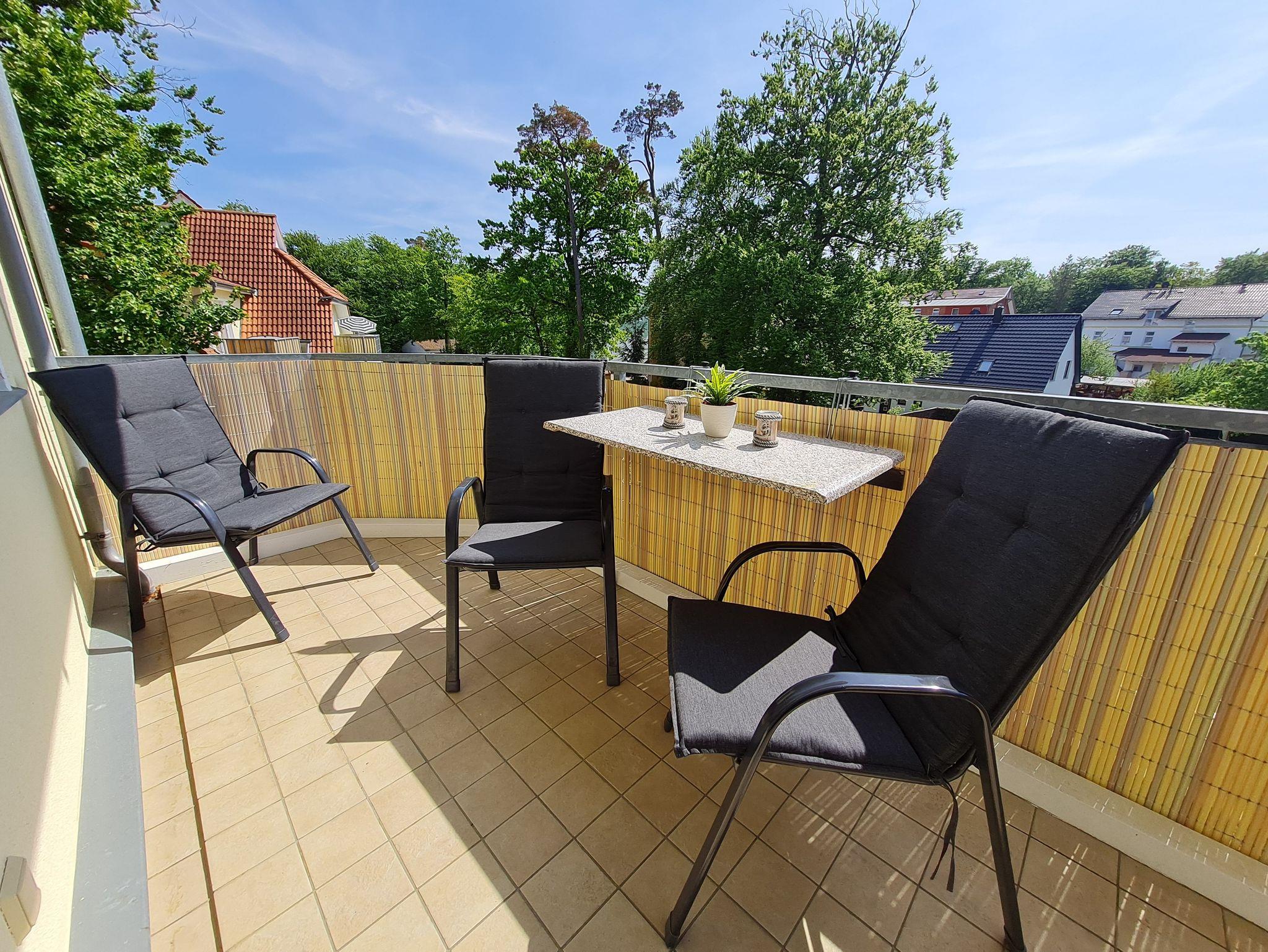 Gemütliche 2-Zimmer-Ferienwohnung mit Südbalkon, 350 m vom Strand in Graal-Müritz entfernt.
