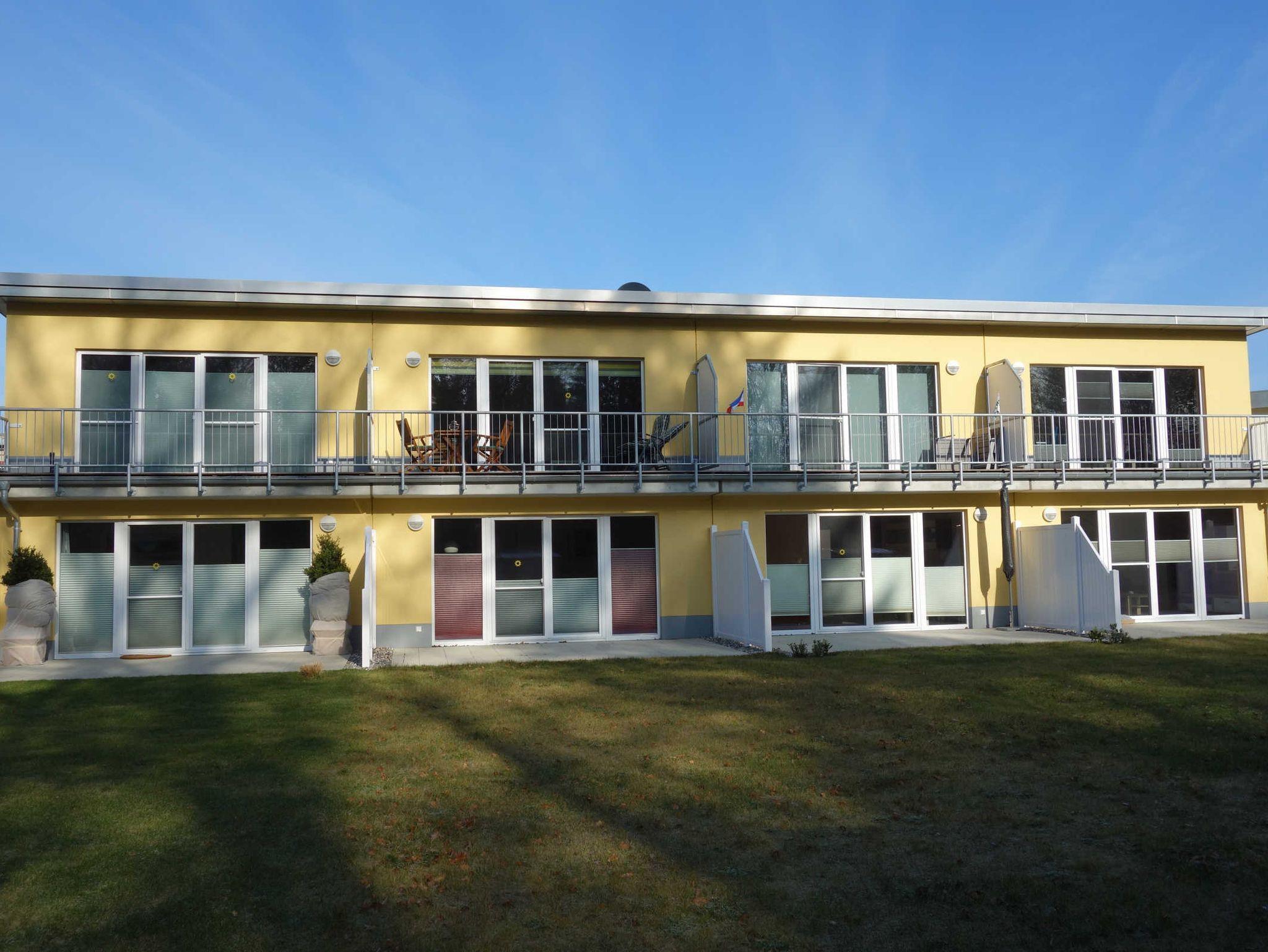 Zu der Ferienwohnung gehören ein Balkon mit Balkonmöbeln und eine Fahrradbox sowie ein Stellplatz für Ihren PKW direkt vor dem Haus.