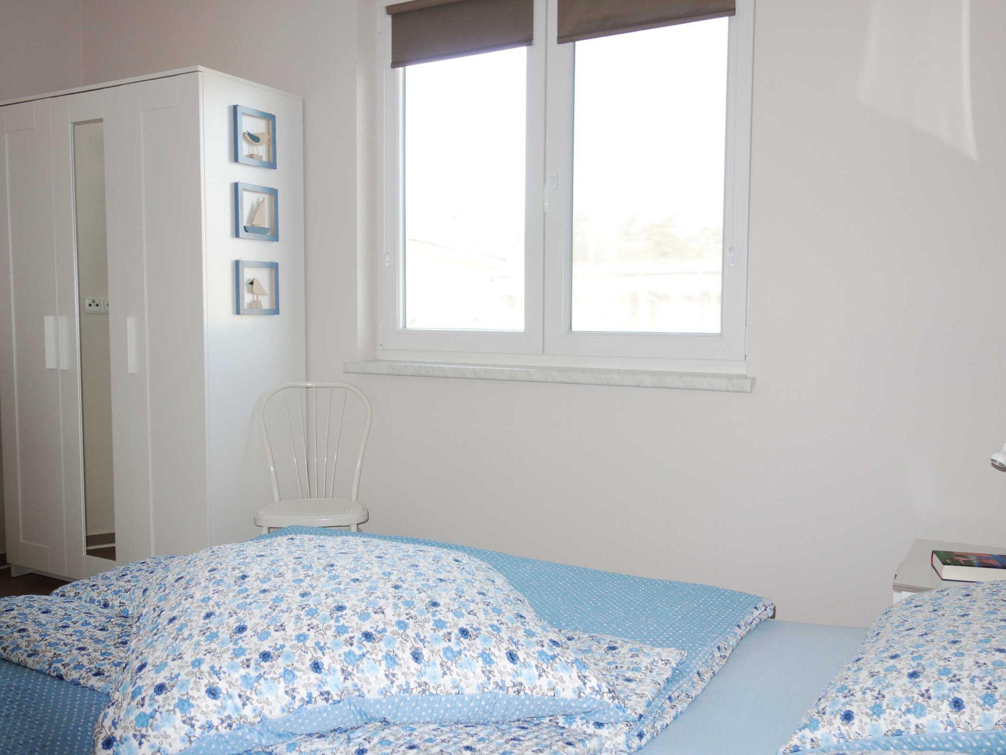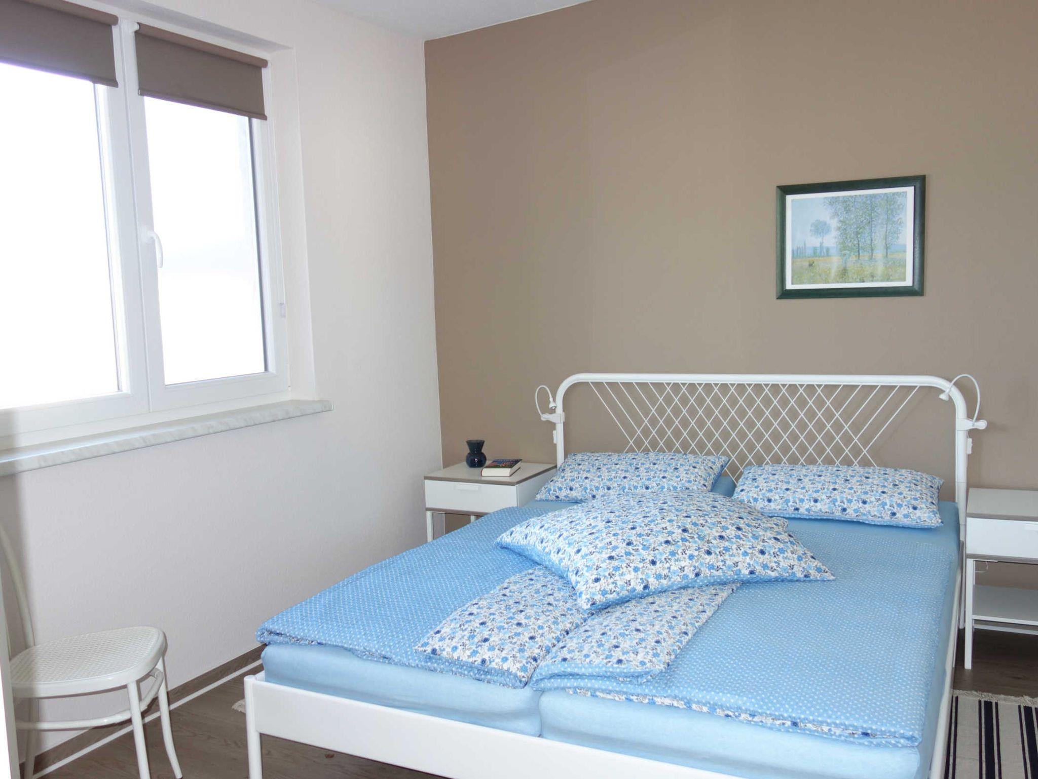 In dem Schlafzimmer stehen ein Doppelbett, 2 Nachttischschränke und ein Kleidenschrank.