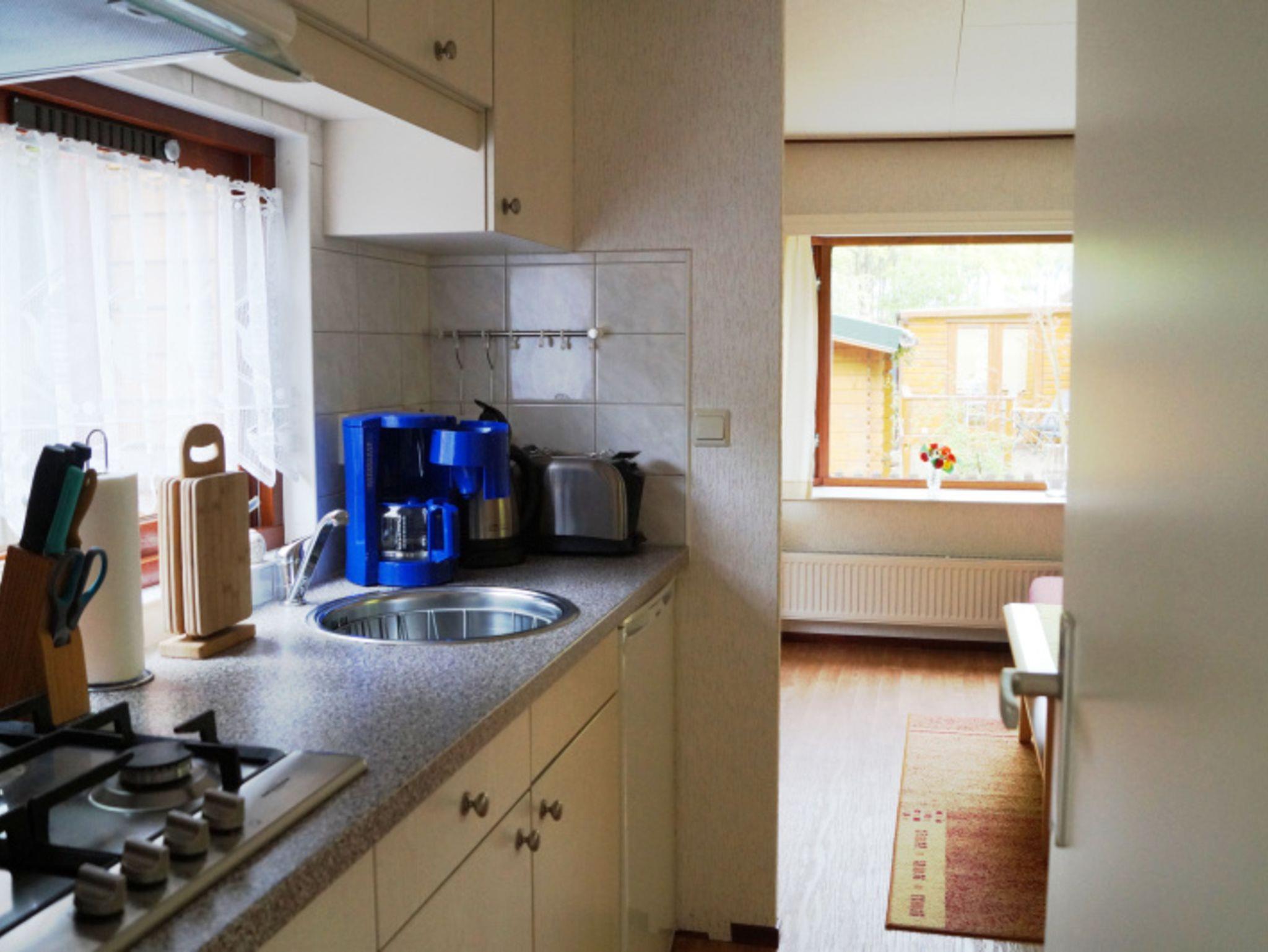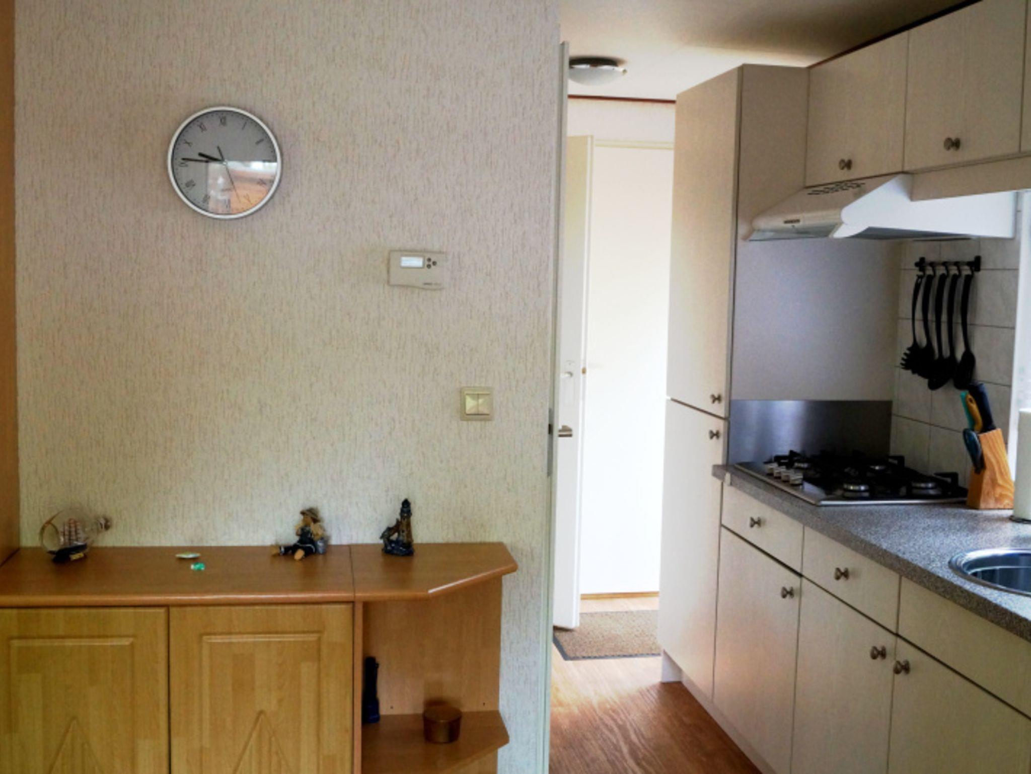 Die Küchenzeile verfügt u.a. über einen Kühlschrank, ein Gefrierfach, 4 Gas Kochstellen, einen Toaster und einen Wasserkocher.