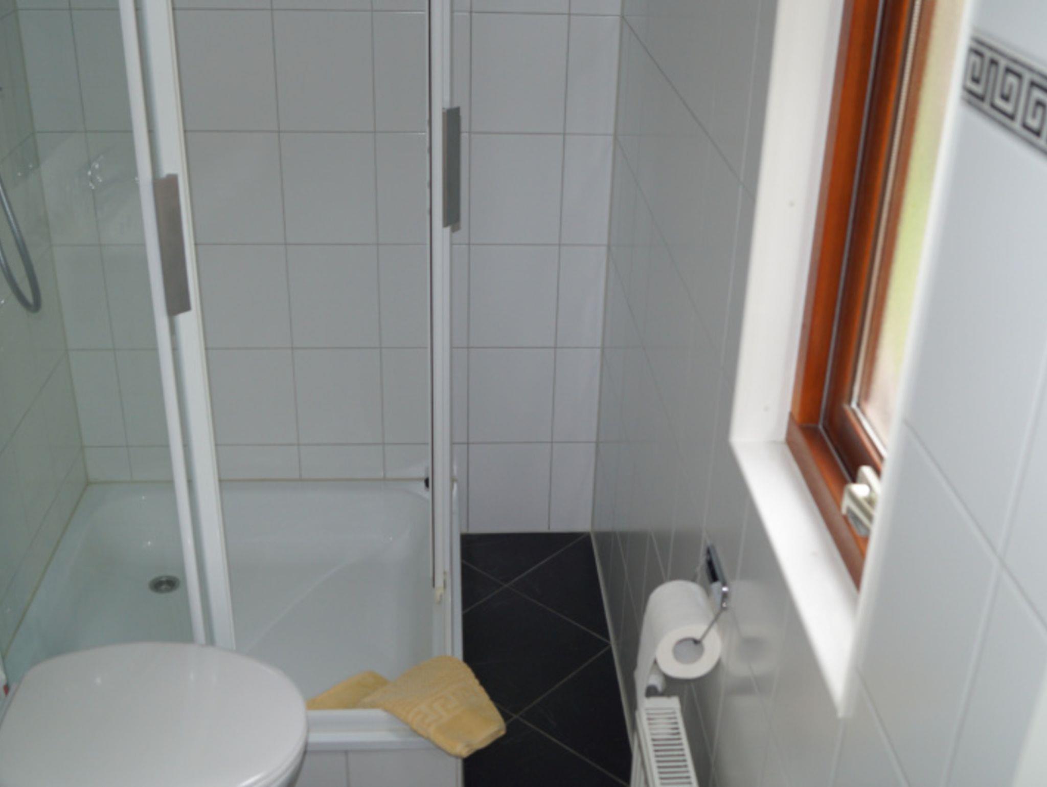 Das Bad ist mit einer Dusche und einem WC ausgestattet.