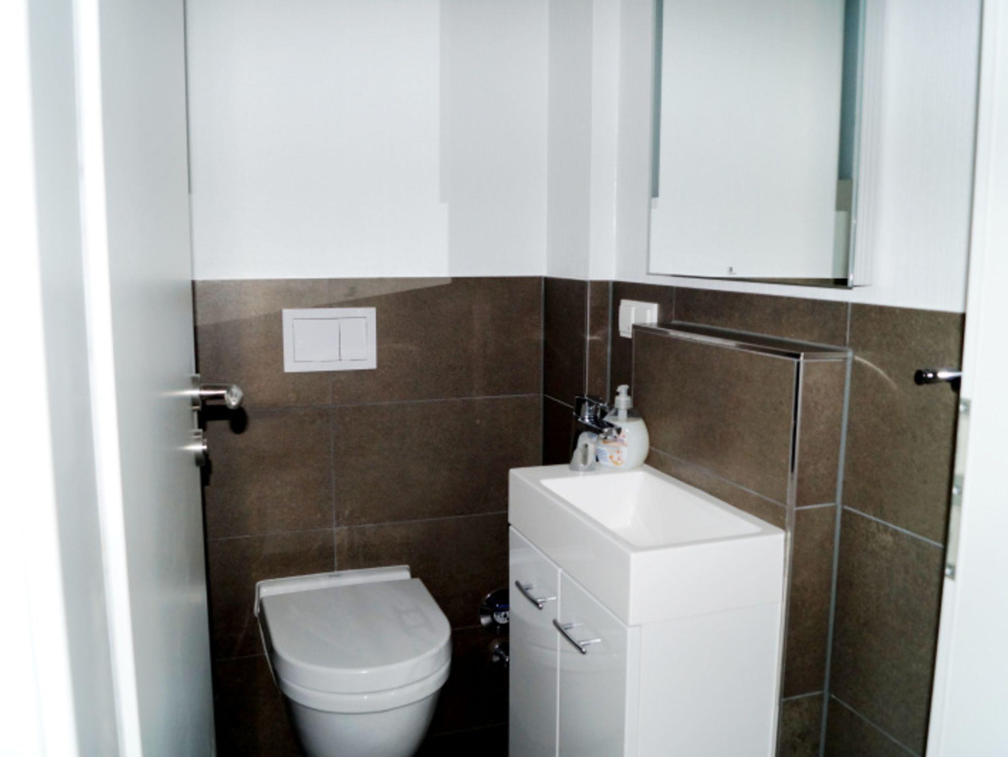 Ebenfalls gibt es in der Wohnung ein Gäste-WC mit einem WC und einem Waschbecken.