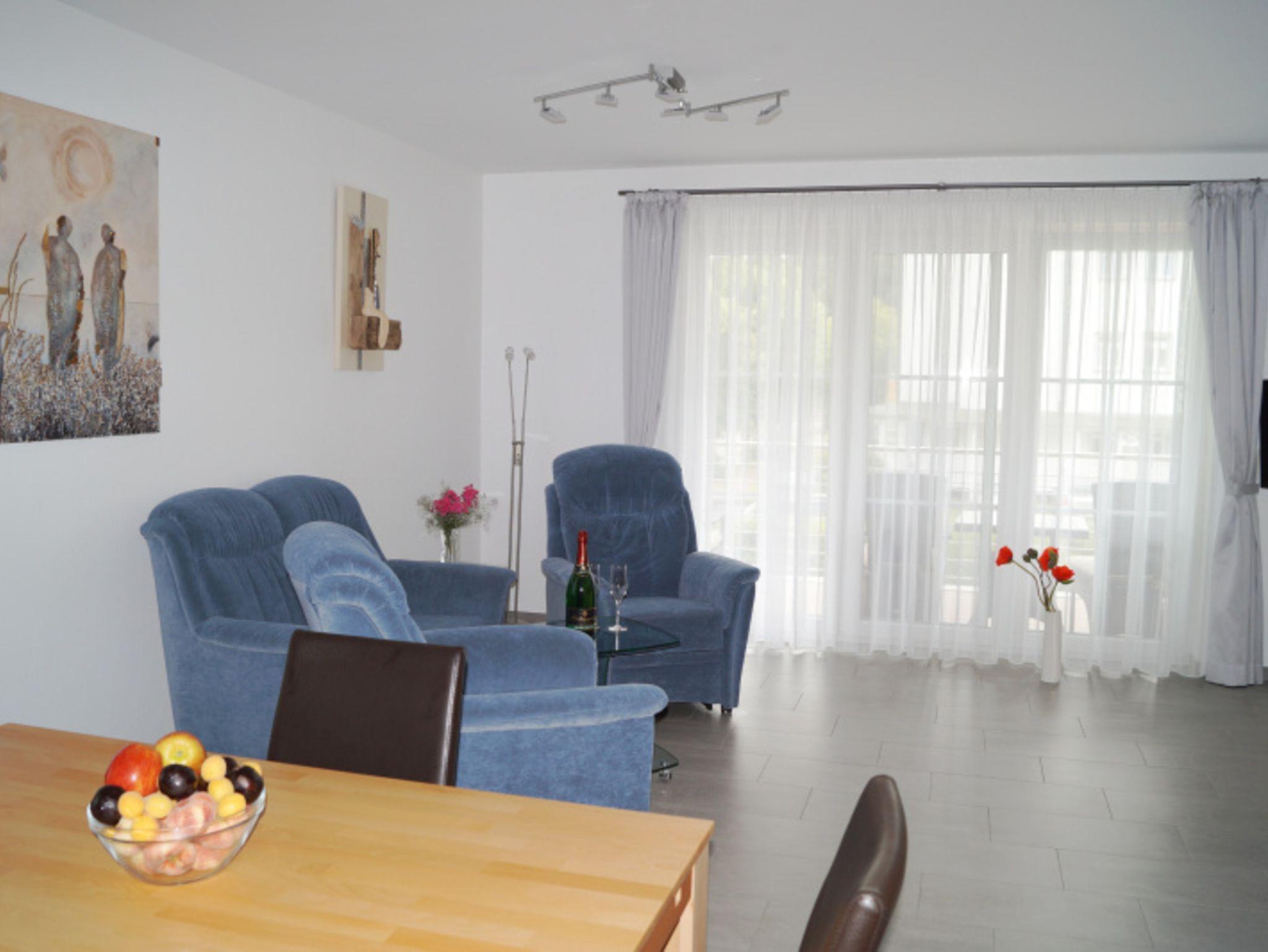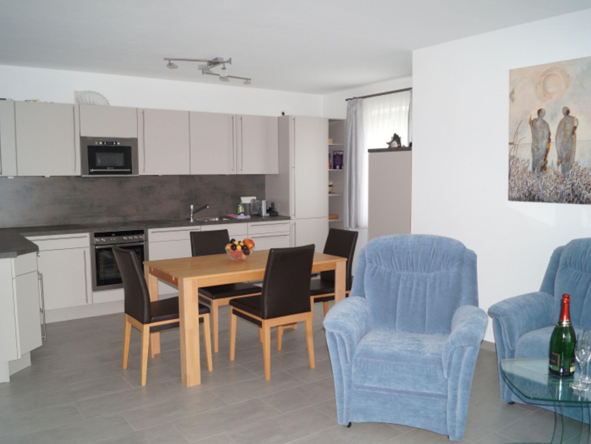 Ihre etwa 88 qm große Ferienwohnung verfügt über ein Wohnzimmer mit integrierter Küche , zwei Schlafzimmer, ein Bad und über ein Gäste-WC sowie einen Balkon.