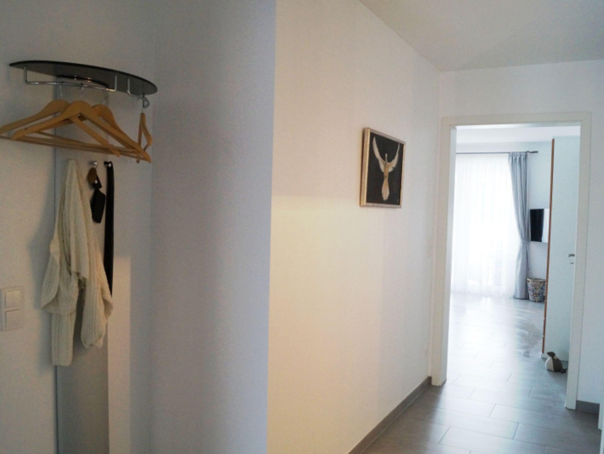 Die Ferienwohnung verfügt über ein Wohnzimmer mit einer Couch und einem Fernseher, eine Küchenzeile mit Backofen, Geschirrspüler und Kühlschrank, zwei Schlafzimmer (eines mit Doppelbett und eines mit einem französischen Wandklappbett), ein Bad mit Dusche, WC, Waschmaschine und Waschtisch sowie ein Gäste-WC mit WC und Waschbecken.