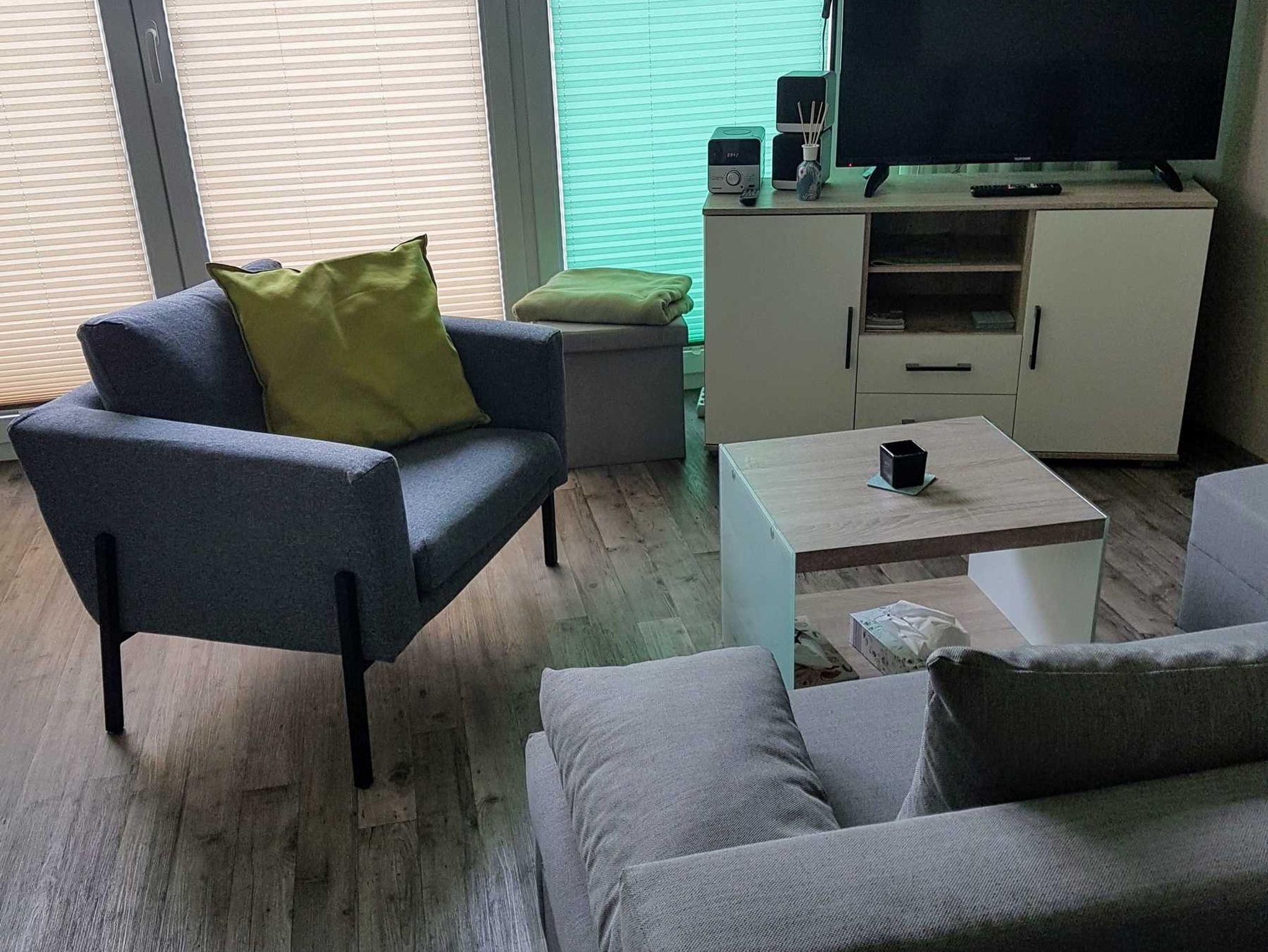 Die Küche ist u.a. mit Kaffeemaschine, Mikrowelle und Kochplatten ausgestattet. Im Wohnzimmer gibt es einen Flachbild-TV. In der gesamten Wohnung steht Ihnen Internet per Wlan zur freien Verfügung.